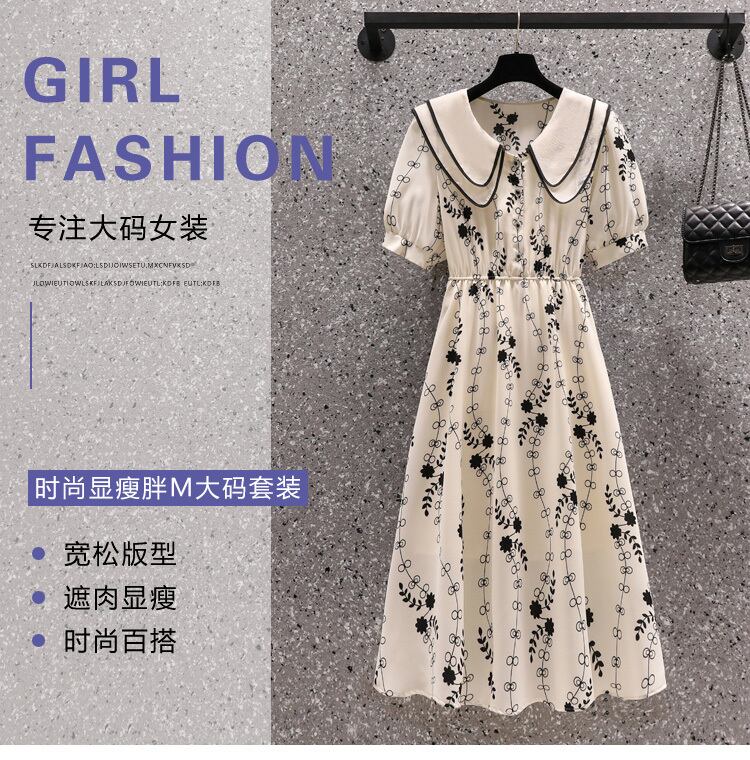大きいサイズの婦人服 2022 太った姉妹の夏の新しいファッションの年齢の減少と薄い気質の花の人形の襟のドレス 大きめサイズ サマー 夏物 花柄 8884141990160912
