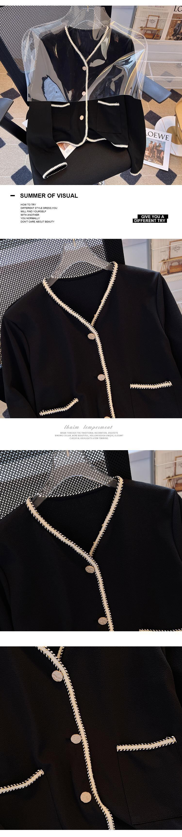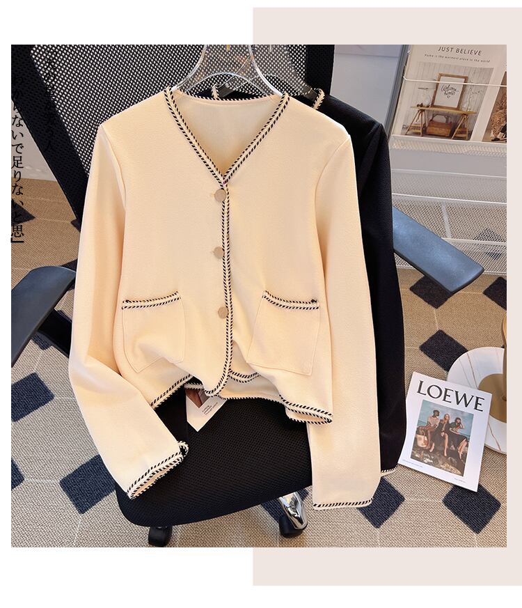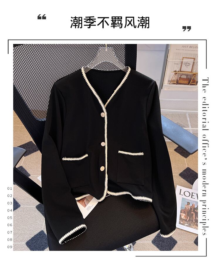 プラスサイズの婦人服2023ファットシスター春の新作フレンチ気質の薄いルーズショートシングルブレストVネックコート 大きめサイズ スプリング 春物 8884122963962452