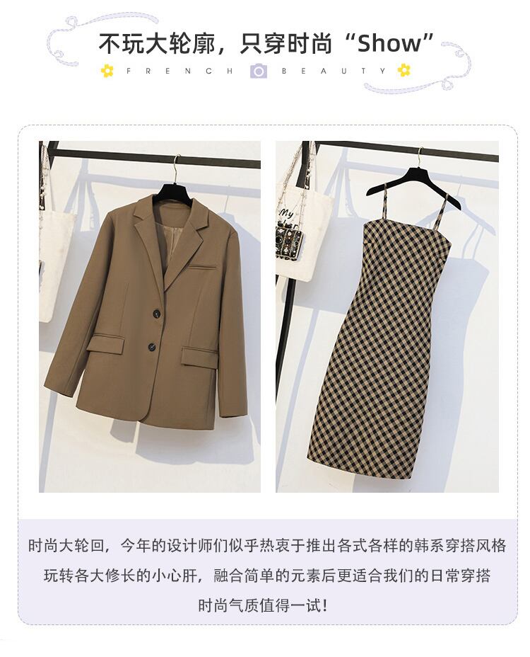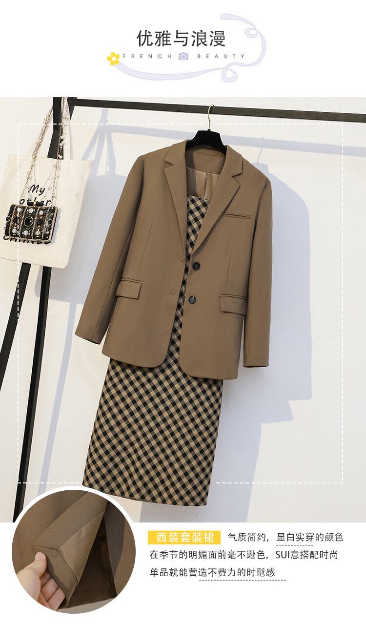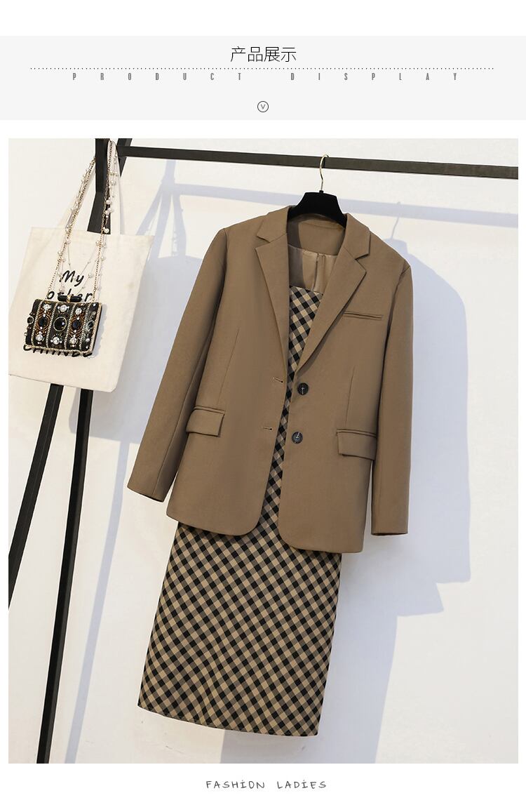 プラスサイズの婦人服 2023 ファットシスター春の新ヘップバーン緩いスーツチェック柄サスペンダードレス 2 点セット 大きめサイズ スプリング 春物 8884168265285401