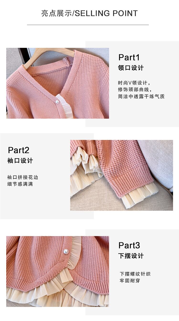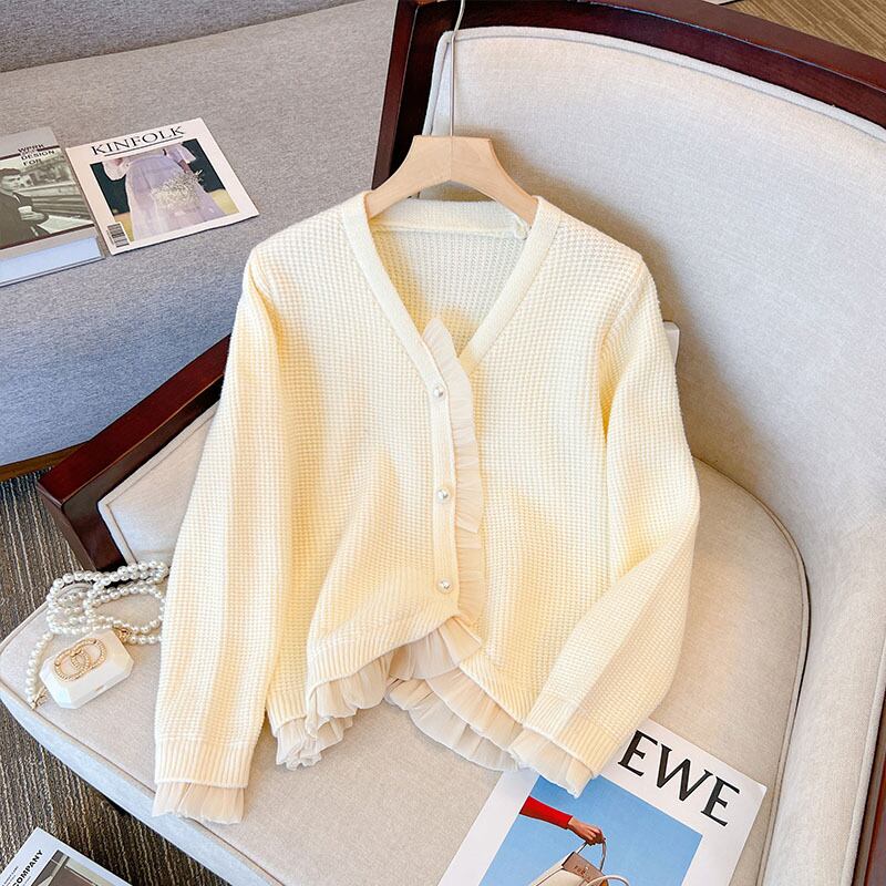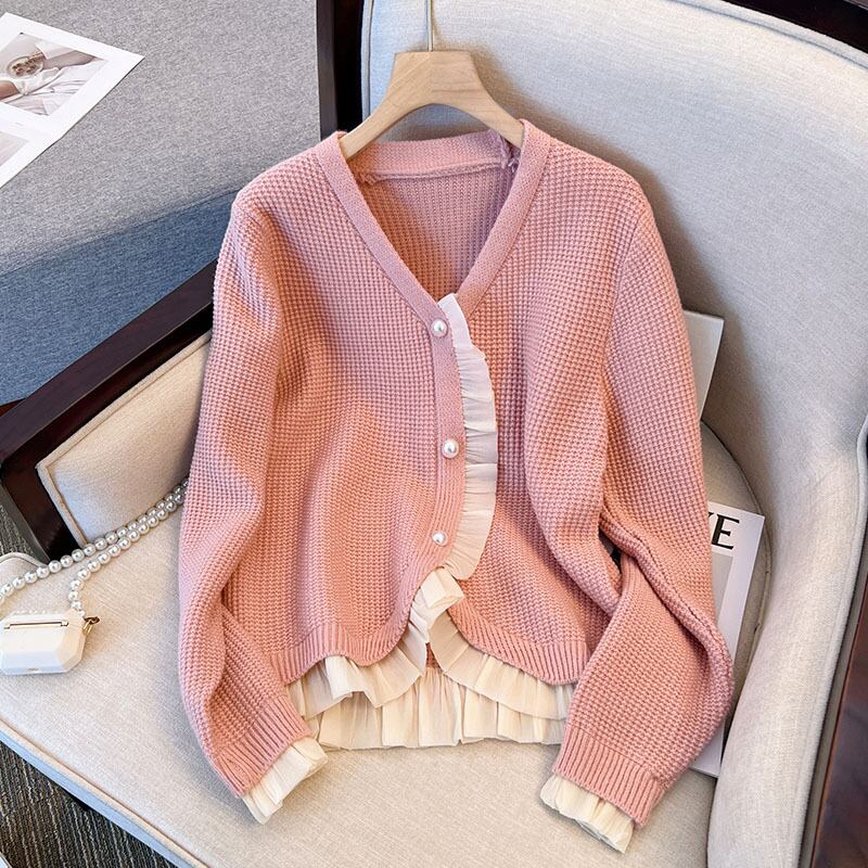 プラスサイズの婦人服 2023 春の新しいファットシスターファッションフレンチレースデザインルーズカーディガンニットセーター 大きめサイズ スプリング 春物 8884156832773349