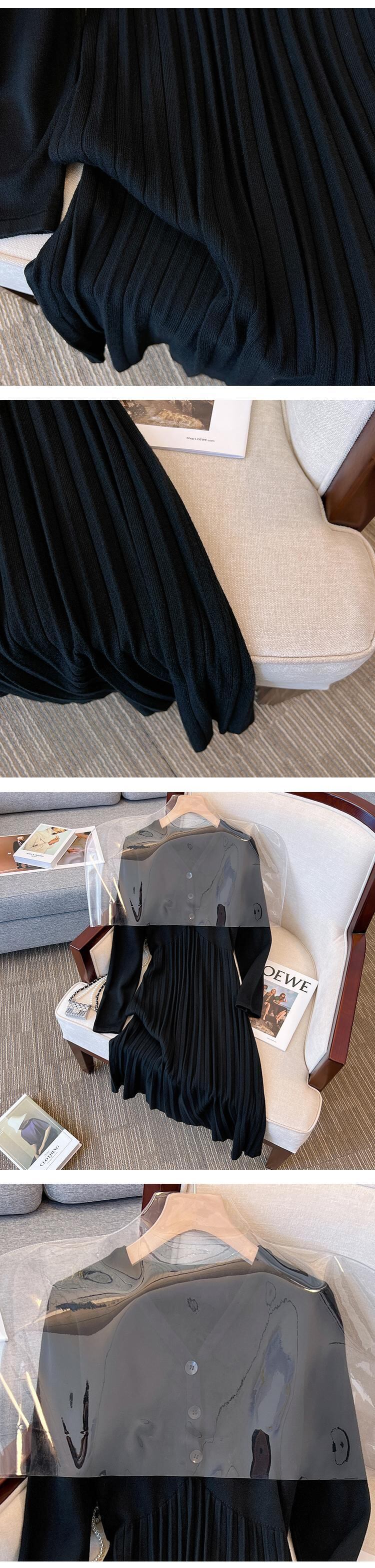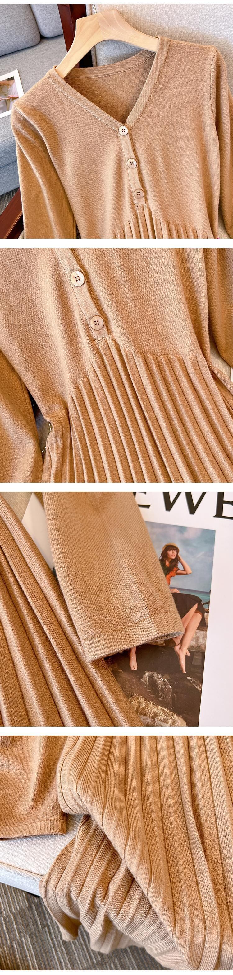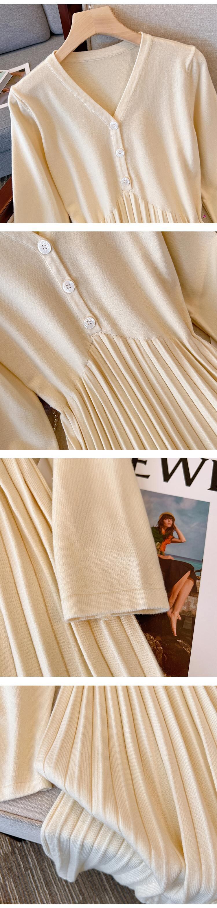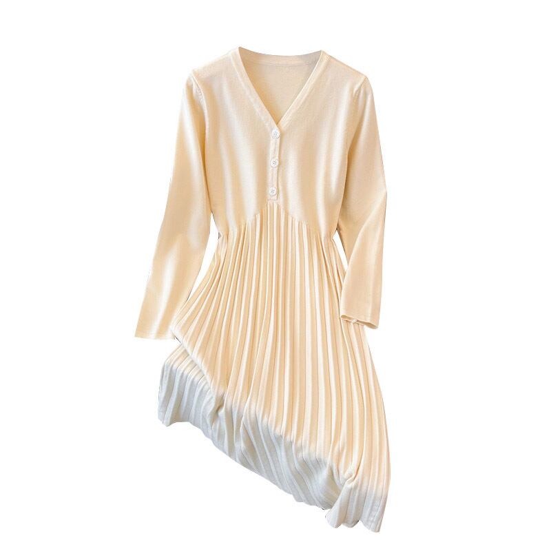 大きいサイズの婦人服 2023 ファットシスター春の新時代の気質のセータースカートオールマッチニット V ネックのドレスの女性 大きめサイズ スプリング 春物 Vネック 8884137180073170