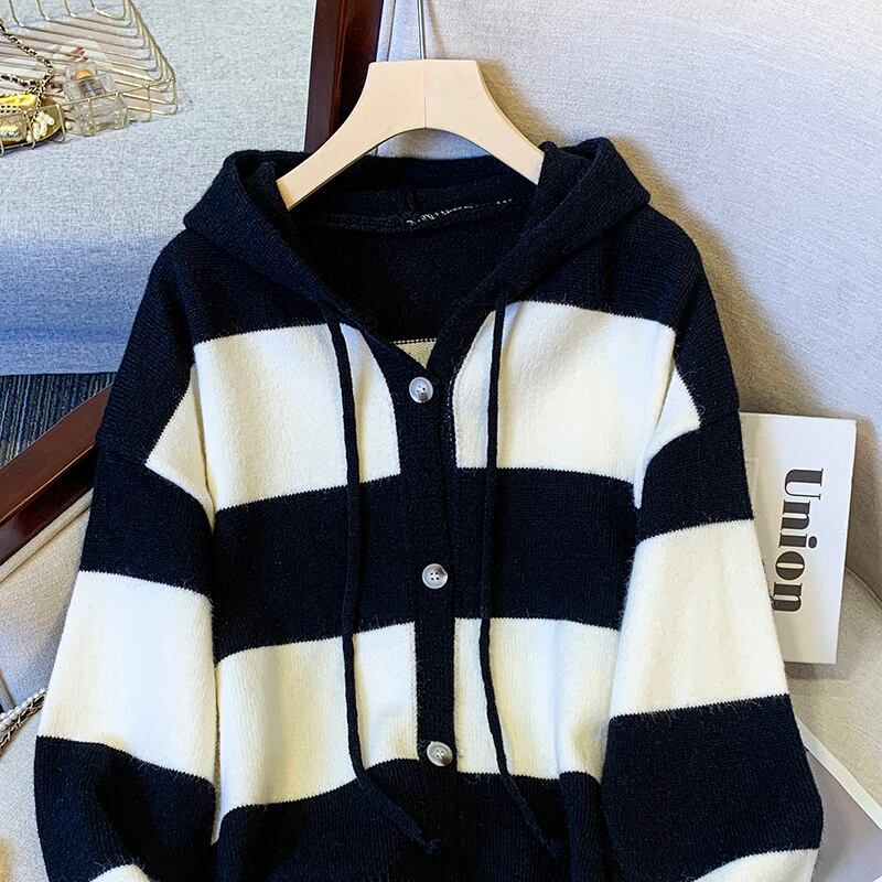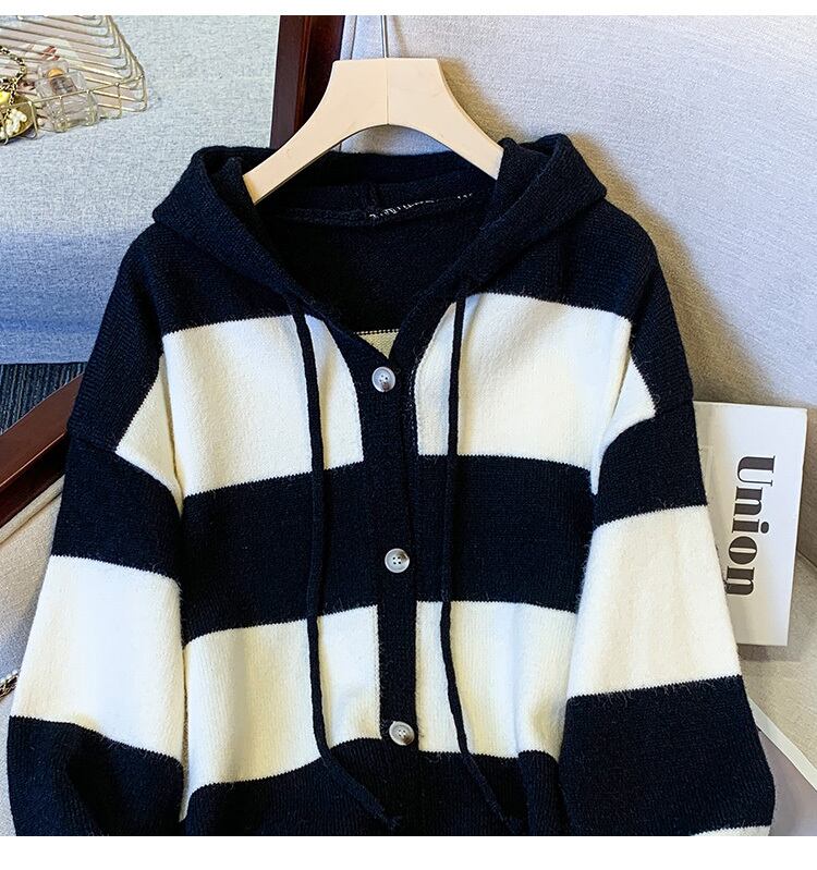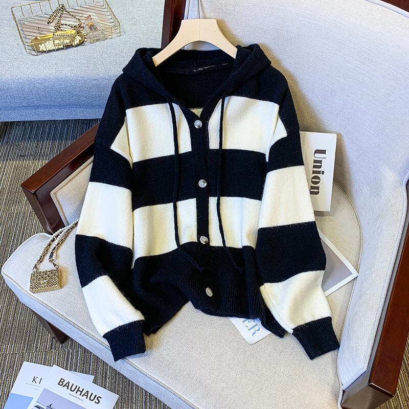 プラスサイズの女性の2023年春服ファットシスターズジャケットストライプセータールーズで薄いアウターウェアセーター 大きめサイズ スプリング 春物 8884129976499546