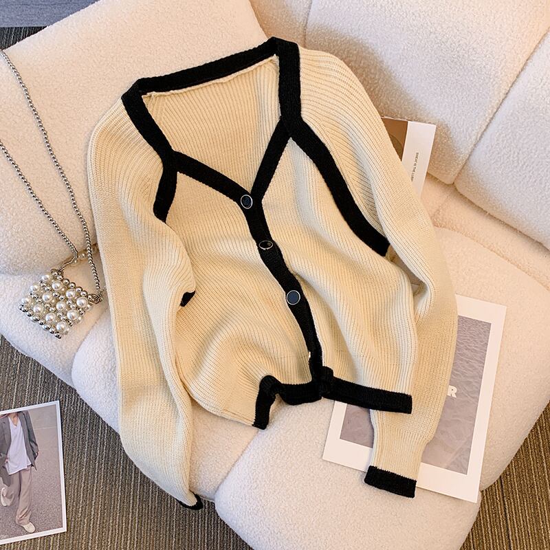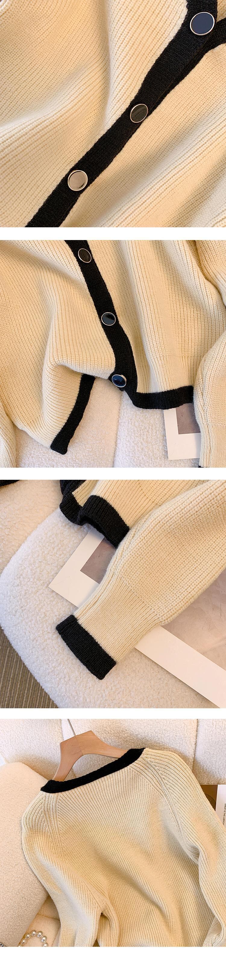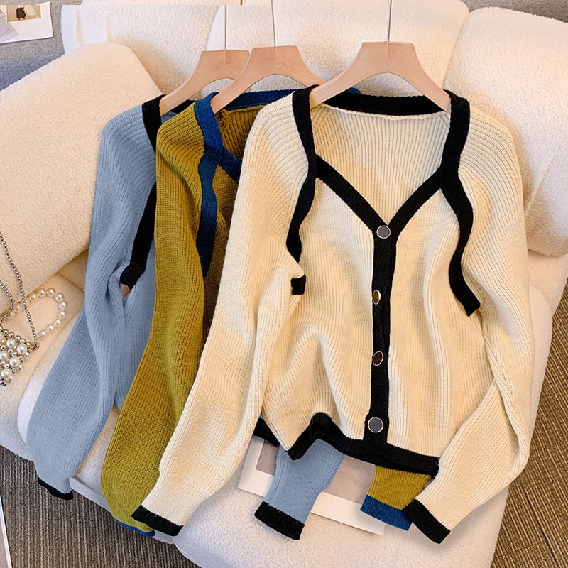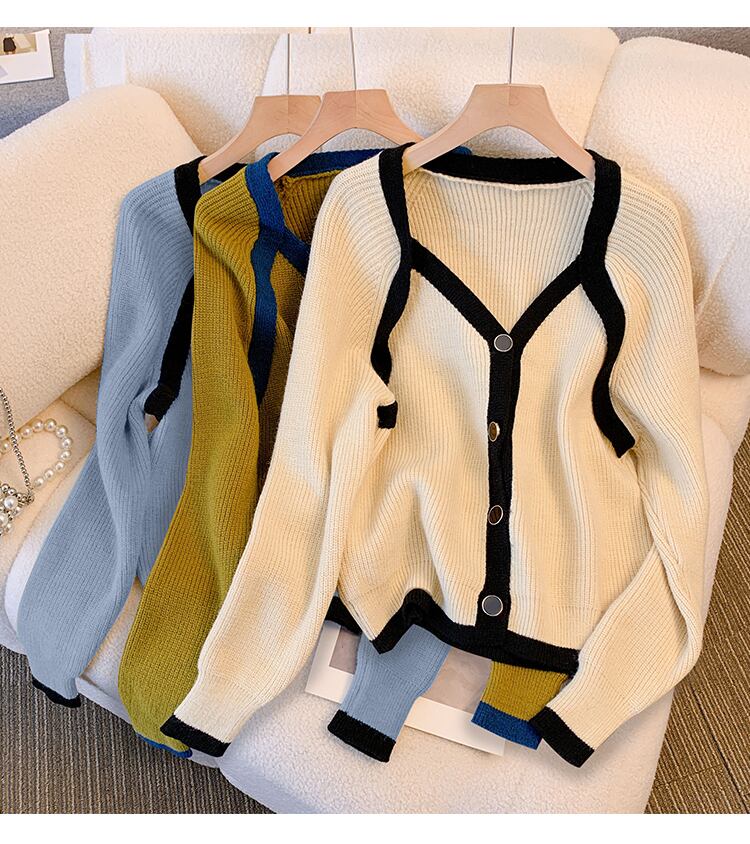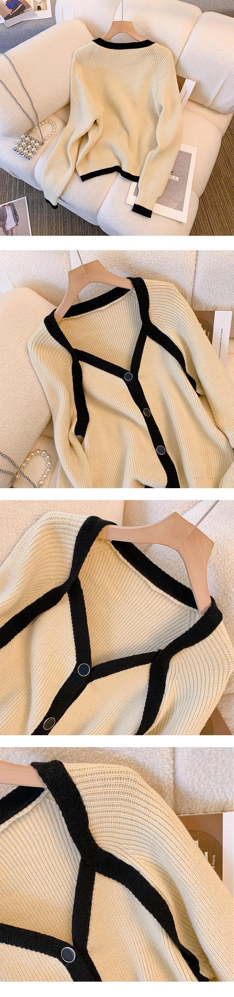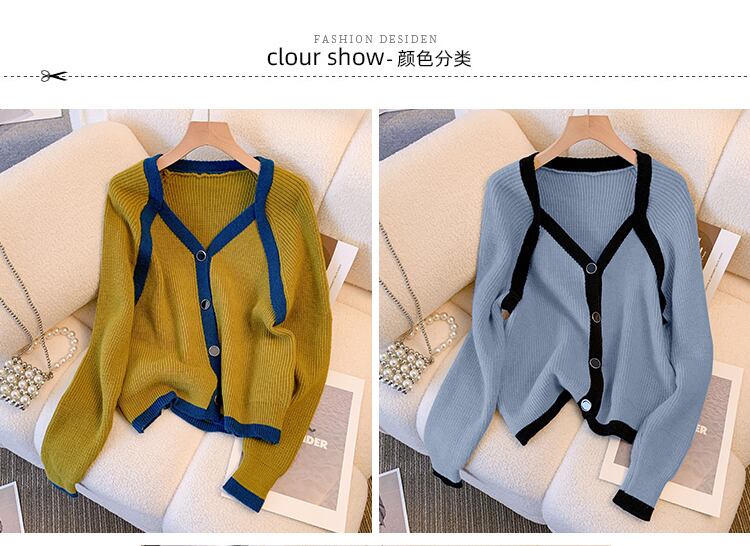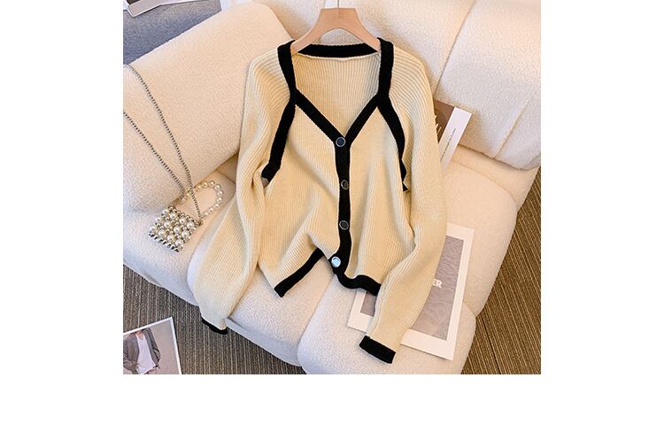 大きいサイズの婦人服 2023 春の新しいスタイルの太った姉妹のデザインのセンス バージョン V ネックの配色のゆったりとした肉のカバー ニット セーター 大きめサイズ スプリング 春物 Vネック 8884179535347215