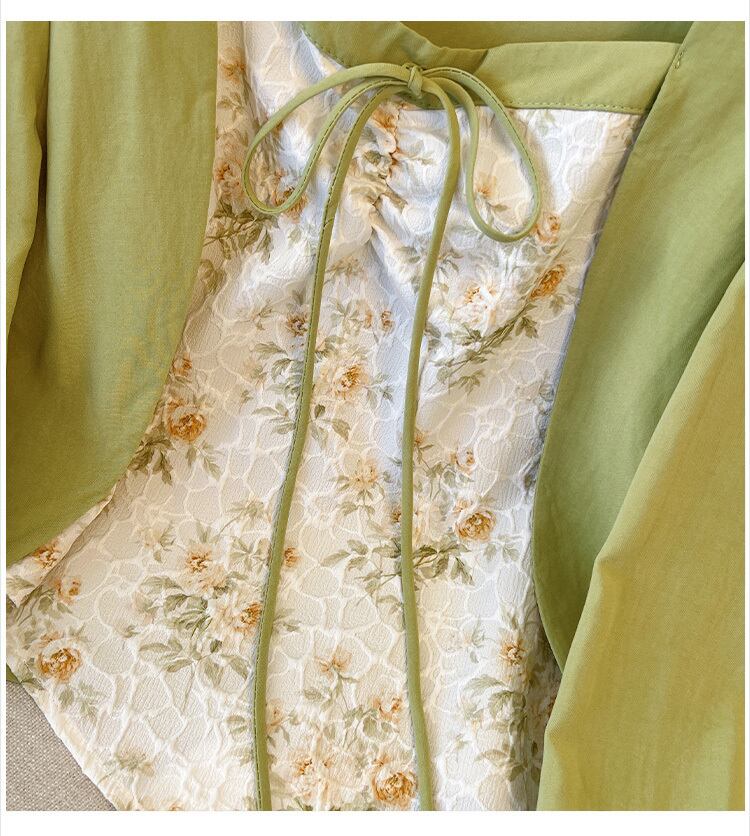 大サイズの婦人服 2023 ファットシスター春の新フェイクツーピースシャツスクエアカラー小さな新鮮な花柄スプライシングトップ女性 大きめサイズ スプリング 春物 スクウェア 8884193595323714