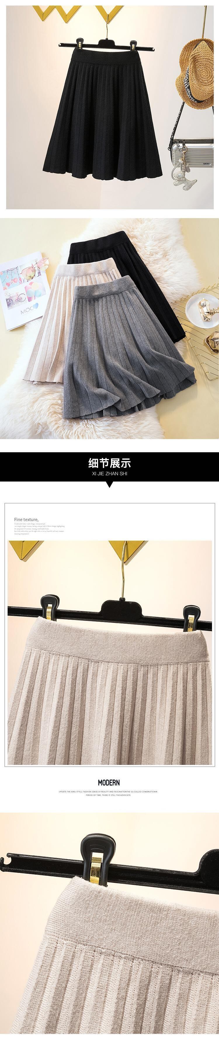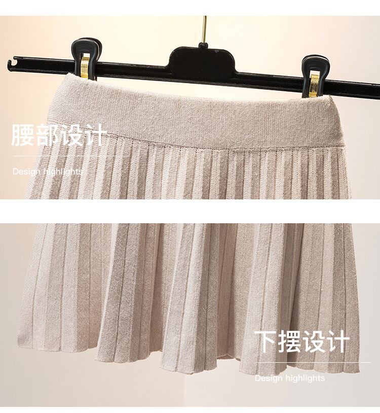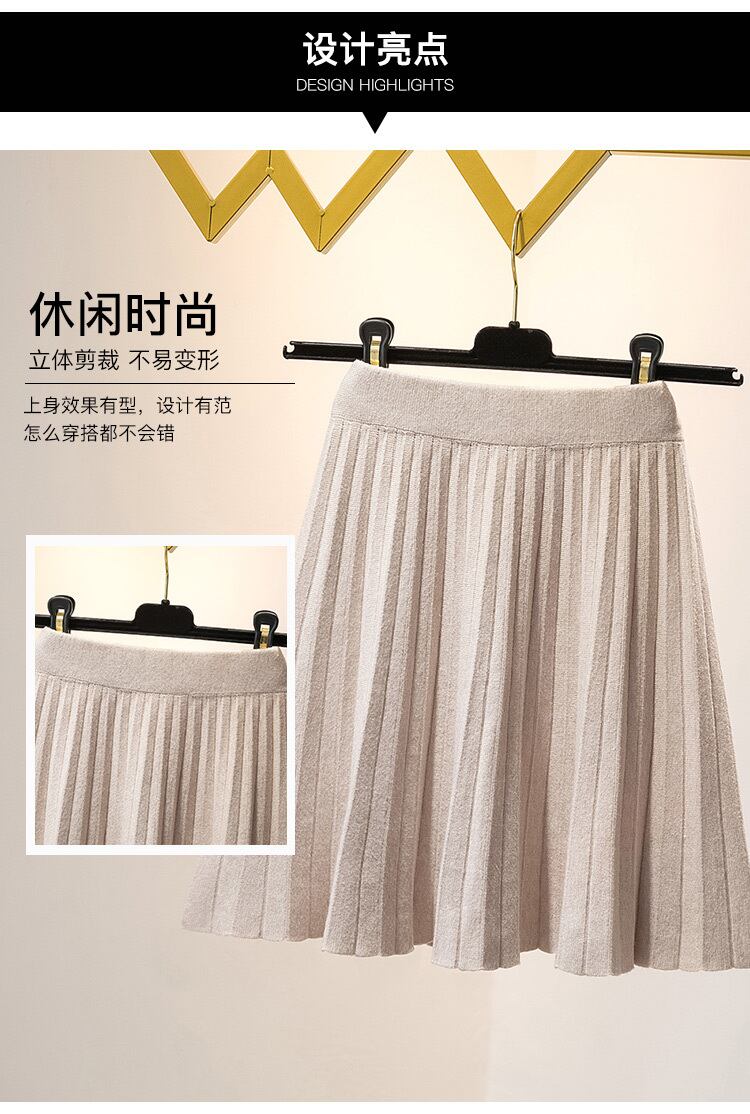 プラスサイズの婦人服 2023 春の新痩身ニットスカートハイウエスト a ラインプリーツスカートの女性 ハイウェスト 大きめサイズ スプリング 春物 Aライン 8884189028631307