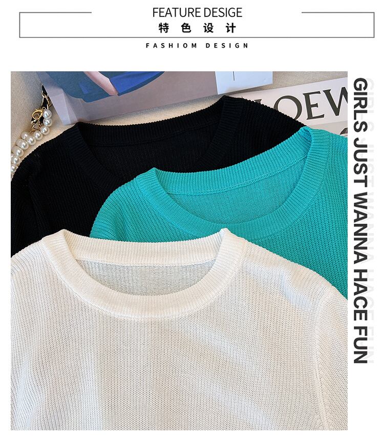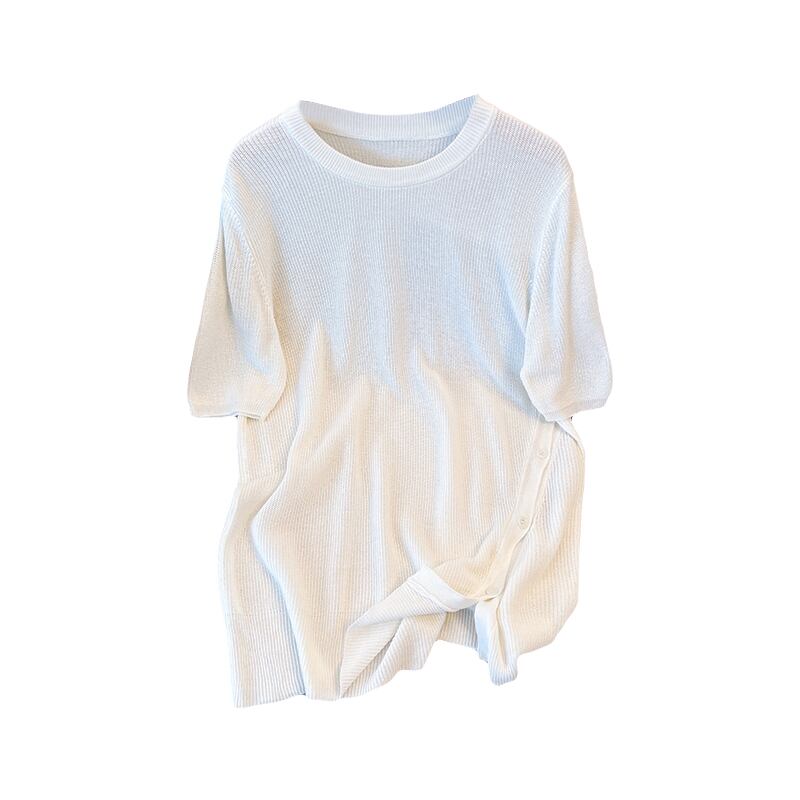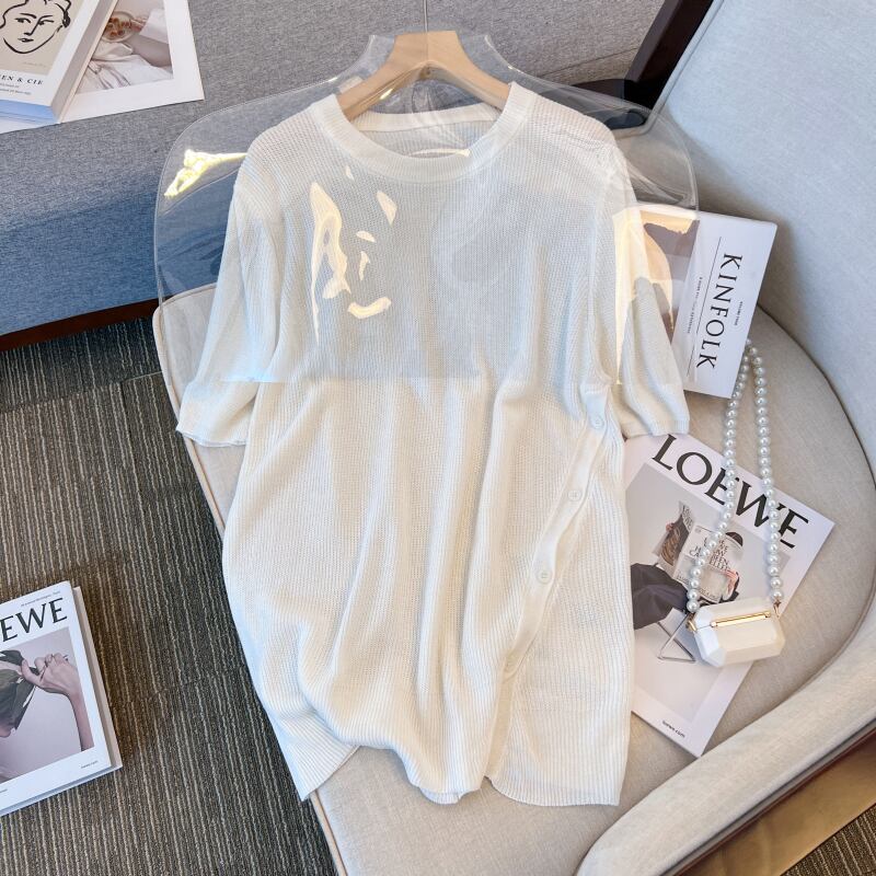 プラスサイズの婦人服 2023 ファットシスター夏新スリムカジュアルカバーベリーニットトップルーズ半袖 Tシャツ 大きめサイズ サマー 夏物 8884183405128273