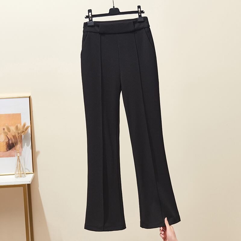 プラスサイズの婦人服 2023 春の新しいスタイルの太った姉妹のファッションの年齢を減らすハイウエストのドレープ無地ヒップカバー マイクロ起動カジュアル パンツ 大きめサイズ スプリング 春物 ソリッドカラー 8884186746333101