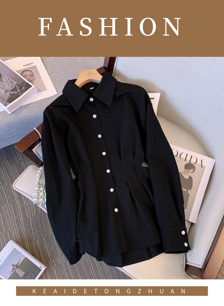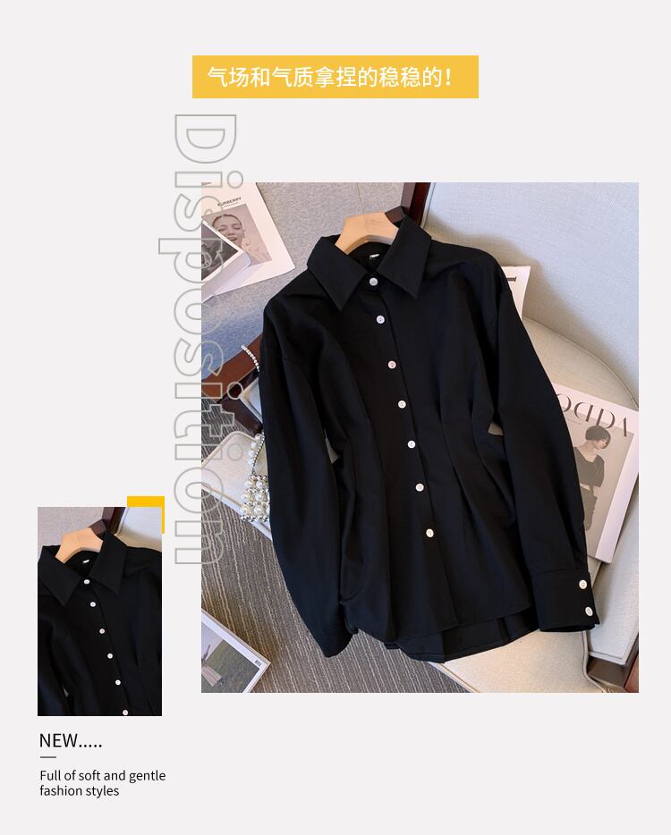 プラスサイズの婦人服2023春の新しいスタイルのファットシスタールーズで薄いデザインのセンスウエストソリッドカラーのフレンチシャツ肉のカバー 大きめサイズ スプリング 春物 8884149480838733