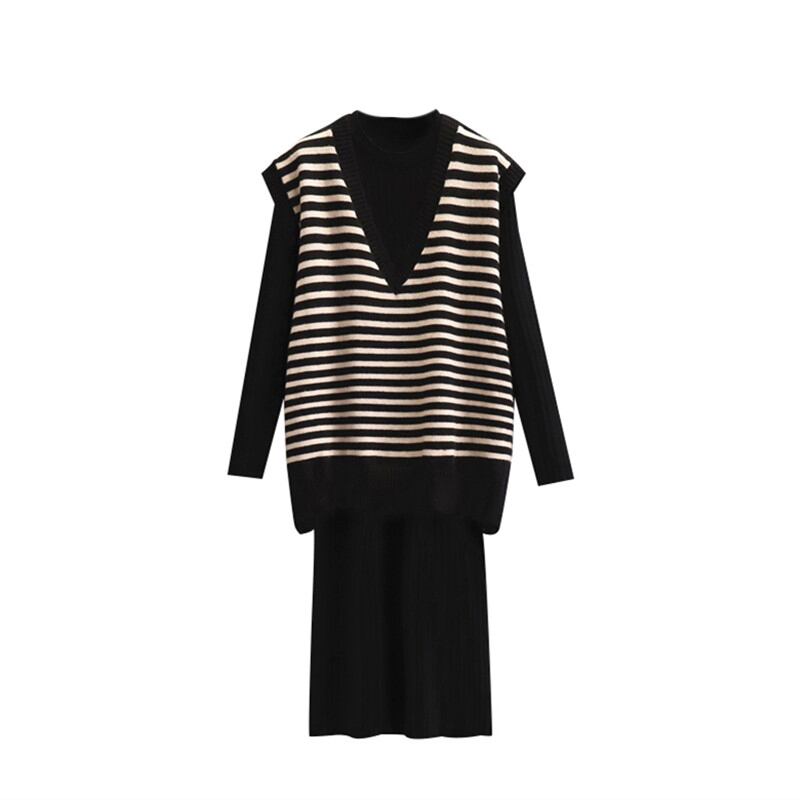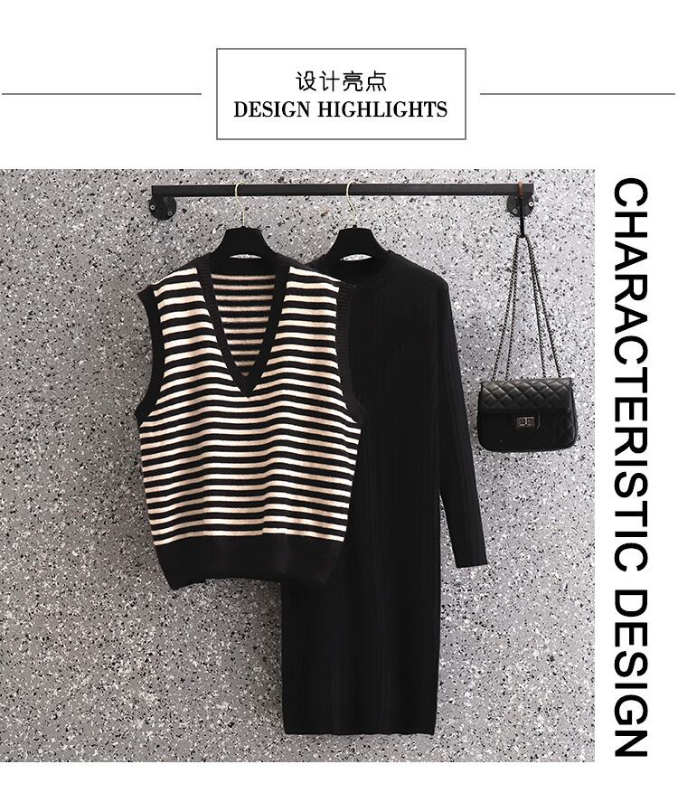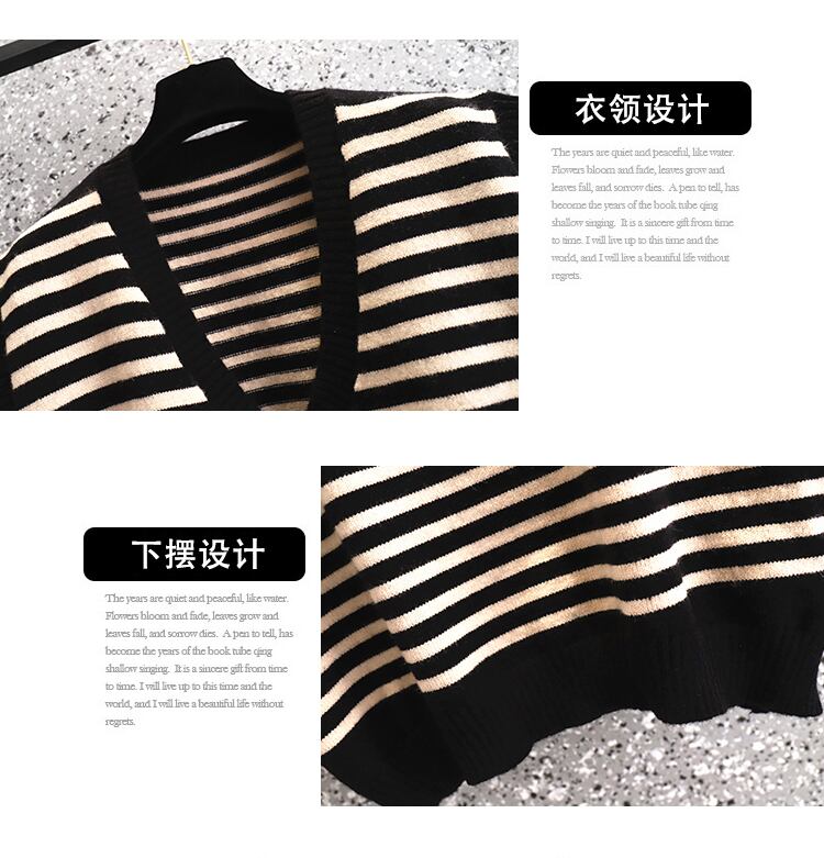 プラスサイズの婦人服2023ファットシスター春の新しい怠惰なスタイルの薄いストライプのベストニットドレスツーピースセット 大きめサイズ スプリング 春物 8884126315740671