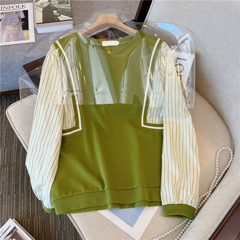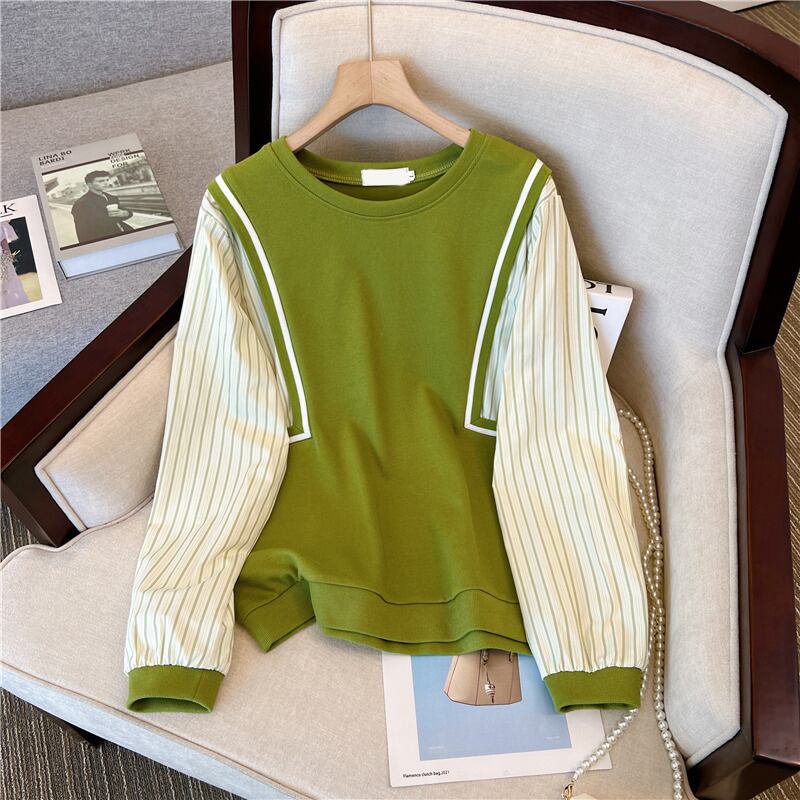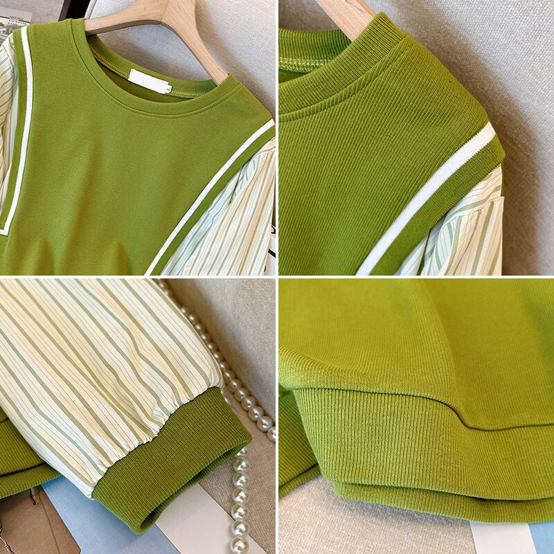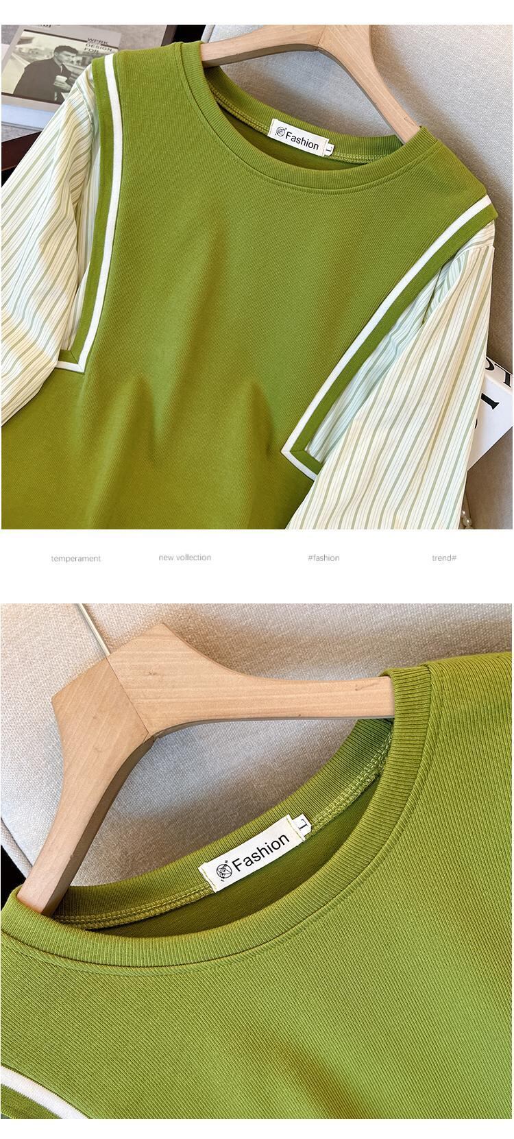 大きいサイズの婦人服 2023 トレンディな女性の春の新しいファット シスター スプライシング ラウンド ネック フェイク ツーピース セーター デザイン センス セーターを着ないでください 大きめサイズ スプリング 春物 Oネック 888417579078157