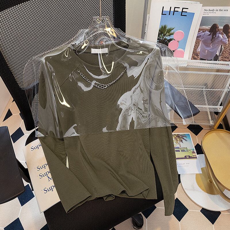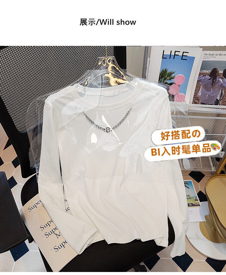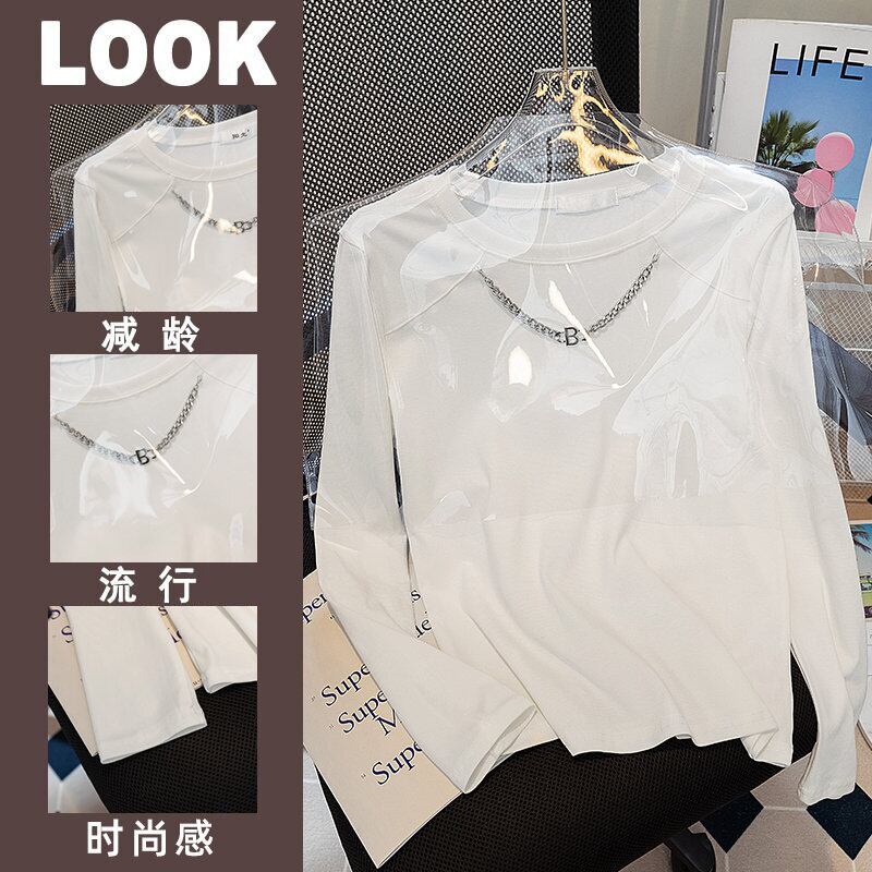 プラスサイズの婦人服 2023 ファットシスター春の新作長袖 Tシャツ eign スタイル底入れシャツスリムフィットと薄いインナートップ ロング 大きめサイズ スプリング 春物 8884162837629833