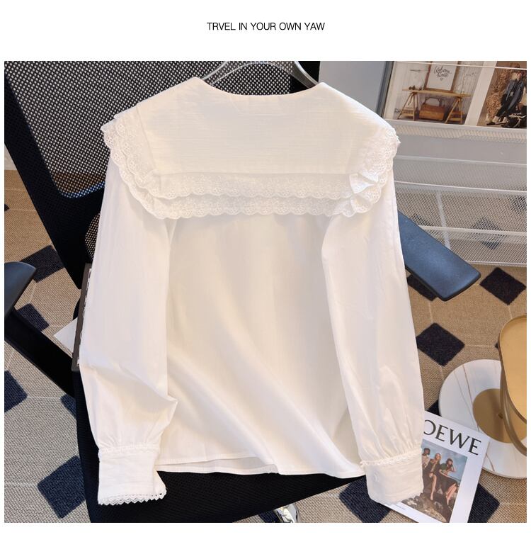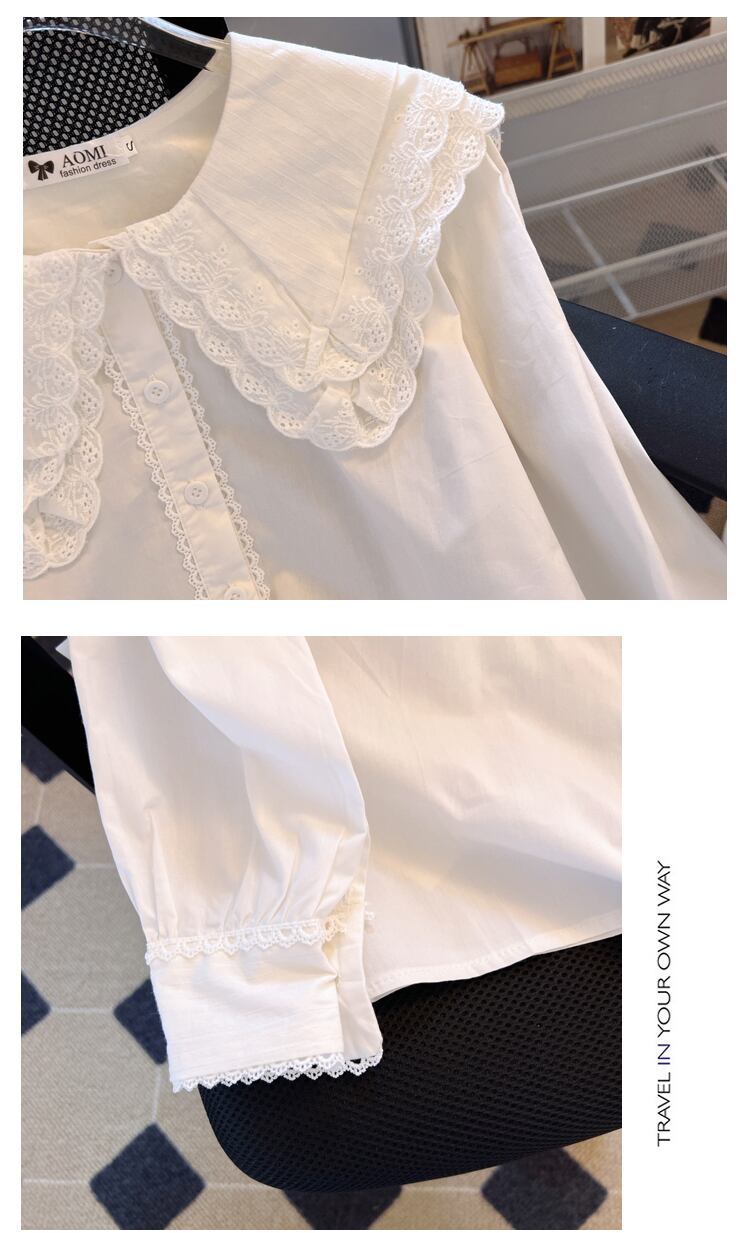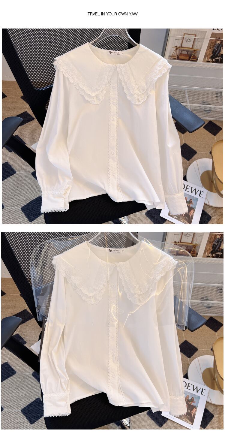 プラスサイズの婦人服 2023 春の新しいファットシスターフレンチドールの襟のレースのステッチ年齢を減らすカジュアルシャツ 大きめサイズ スプリング 春物 8884122446457160