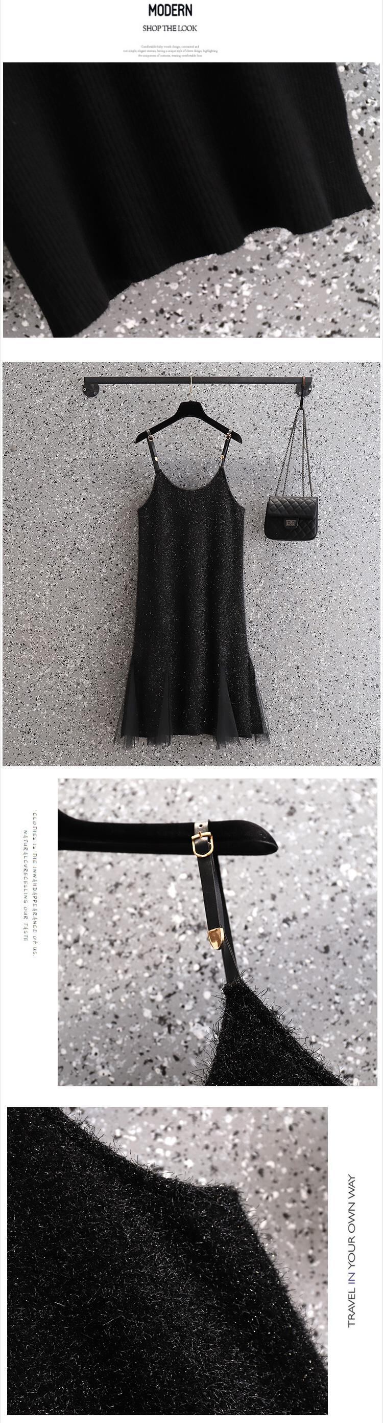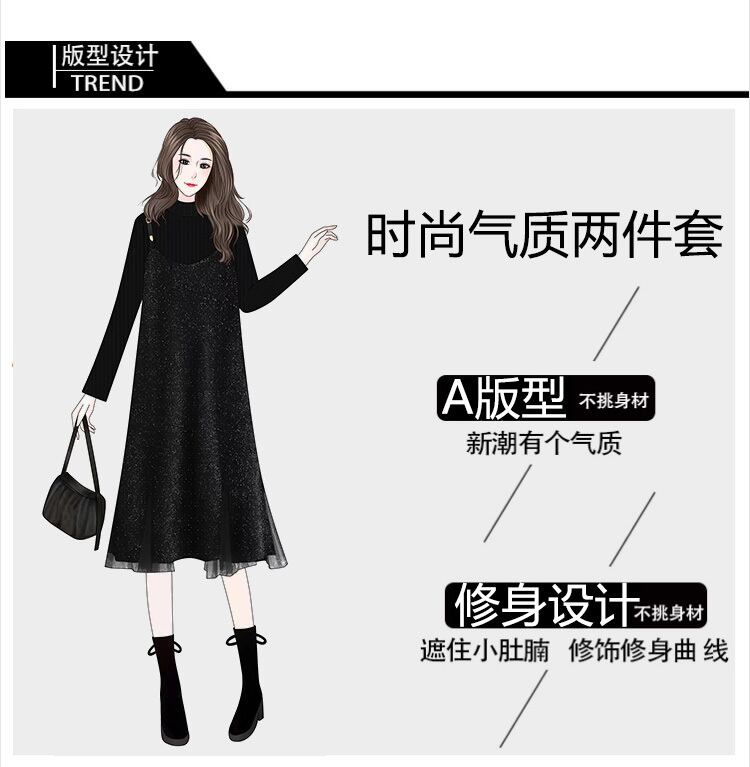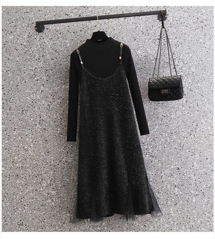 プラスサイズの婦人服 2023 ファットシスター春の新ファッションスリムニット底入れシャツサスペンダードレス 2 点セット 大きめサイズ スプリング 春物 8884118444749094