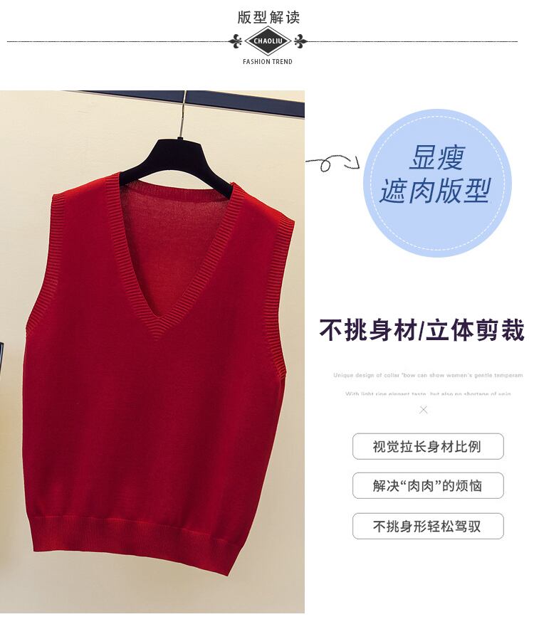 プラスのサイズの婦人服 2023 ファット シスター春の新しいすべての試合の年齢の減少と薄い緩いソリッド カラー ニット ベスト ベストの女性 大きめサイズ スプリング 春物 ソリッドカラー 8884171639698135