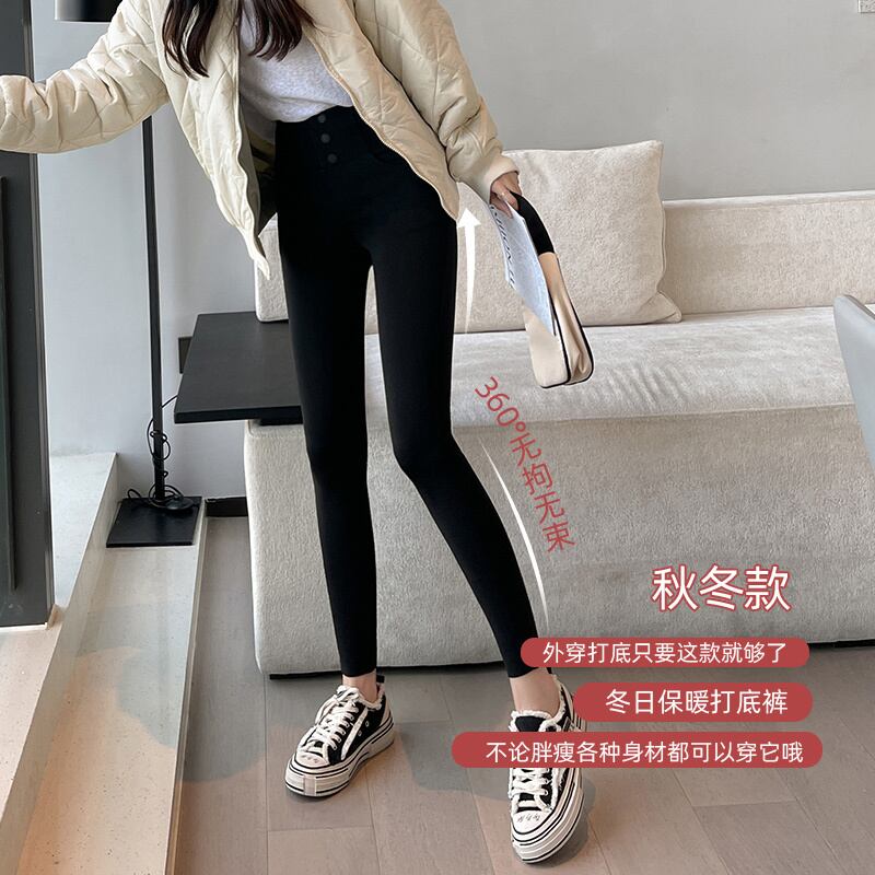 プラスサイズの婦人服 2023 ファットシスター春の新プラスベルベット弾性タイトフィッティングペンシルパンツ 3 ボタンハイウエストマジックパンツ エラスティック 伸縮 大きめサイズ スプリング 春物 8884134948088013
