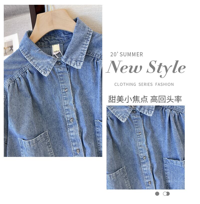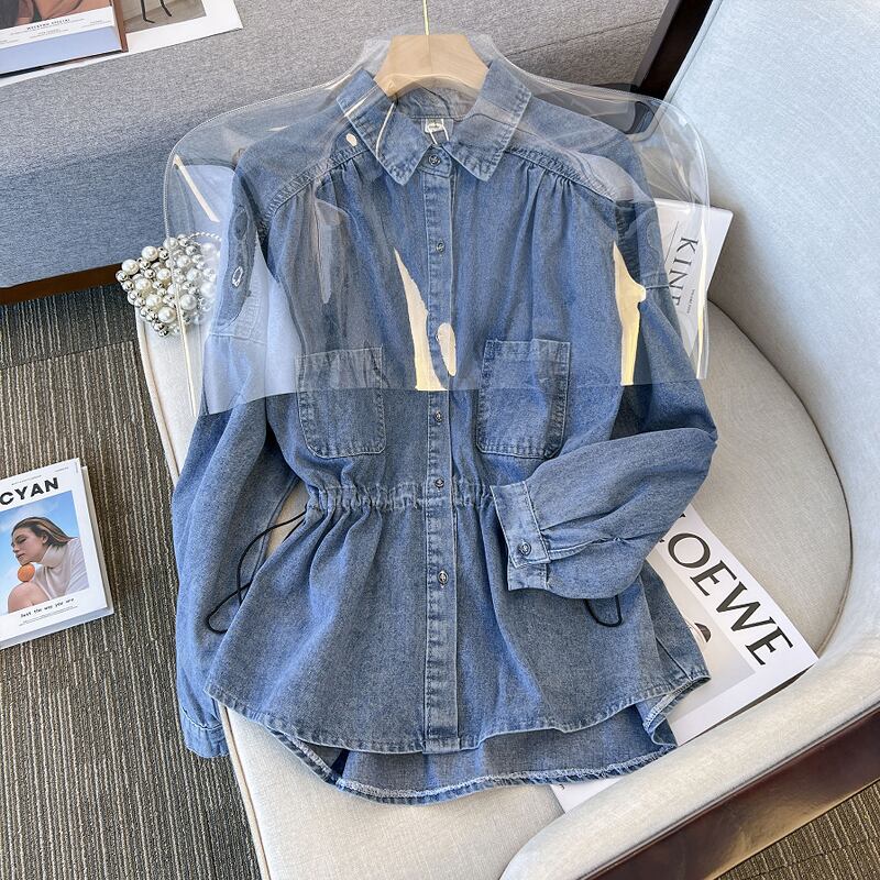プラスサイズの婦人服 2023 春の新しい腹カバー デザイン脂肪姉妹スリム デニム シャツ長袖トップ ロング 大きめサイズ スプリング 春物 8884125637867448