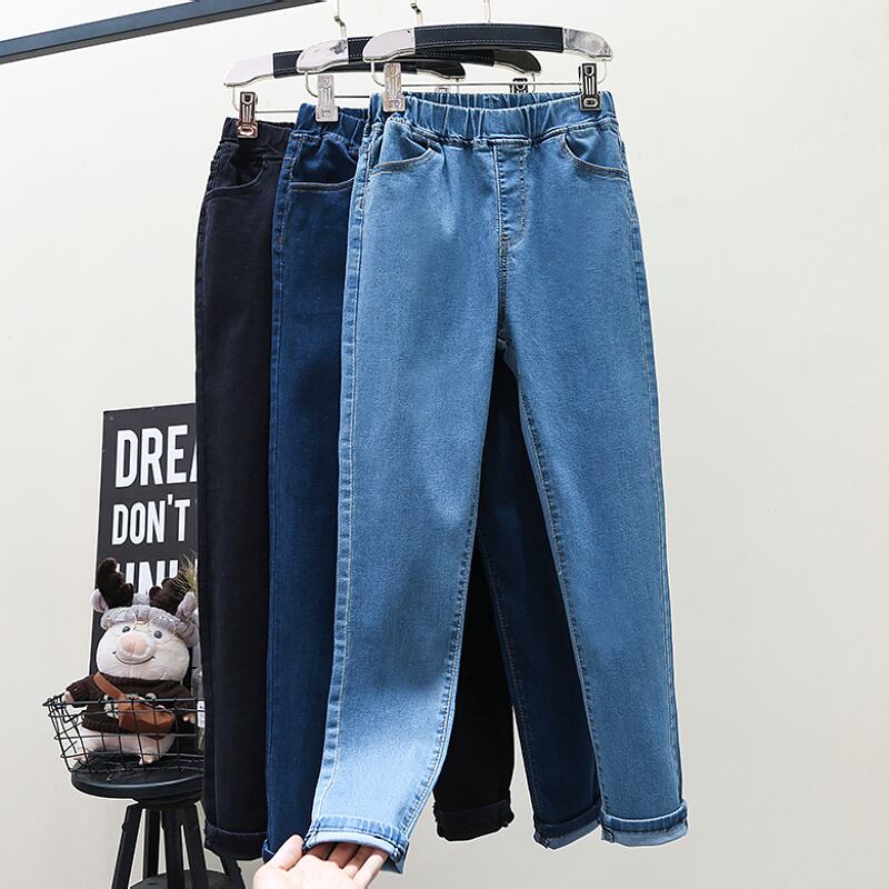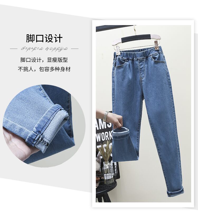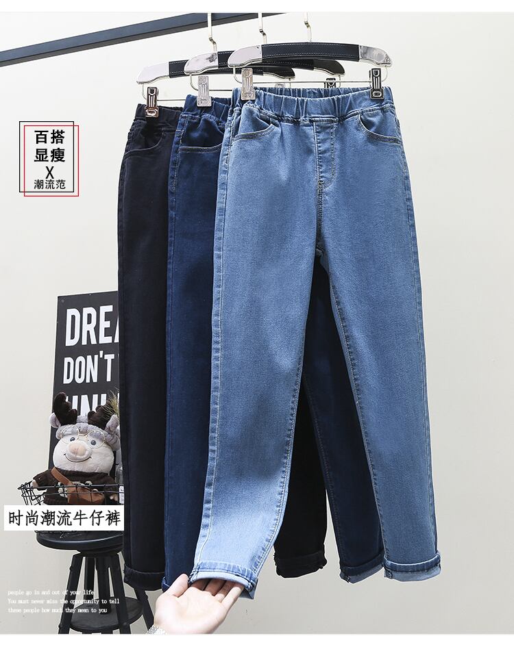 プラスサイズの婦人服 2023 トレンディな女性の春の新しい太った姉妹弾性ウエスト弾性薄い痩身オールマッチ eign スタイルジーンズ エラスティック 伸縮 大きめサイズ スプリング 春物 8884177946493935