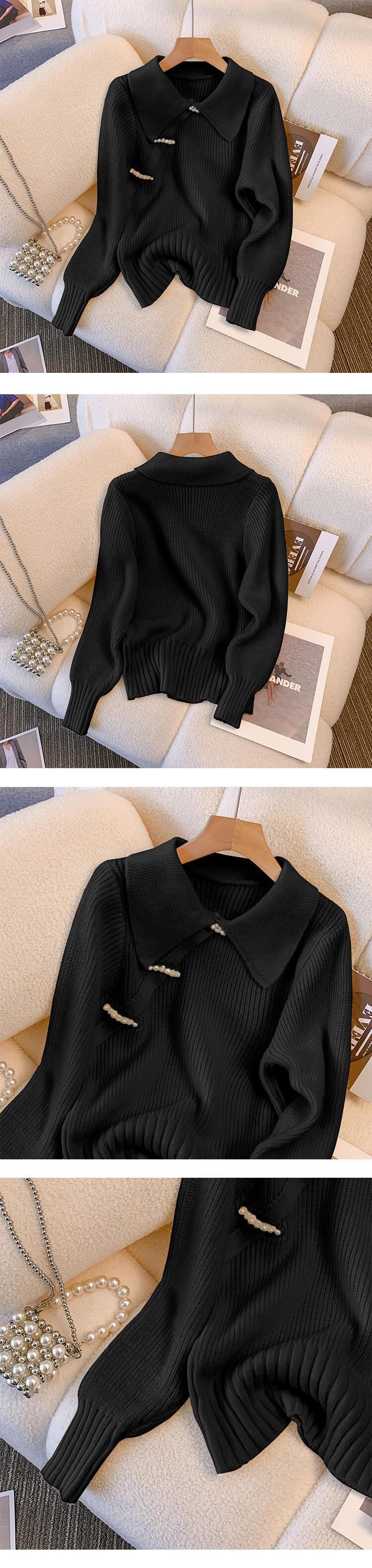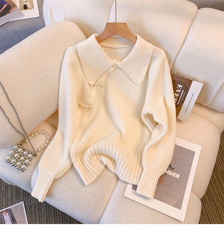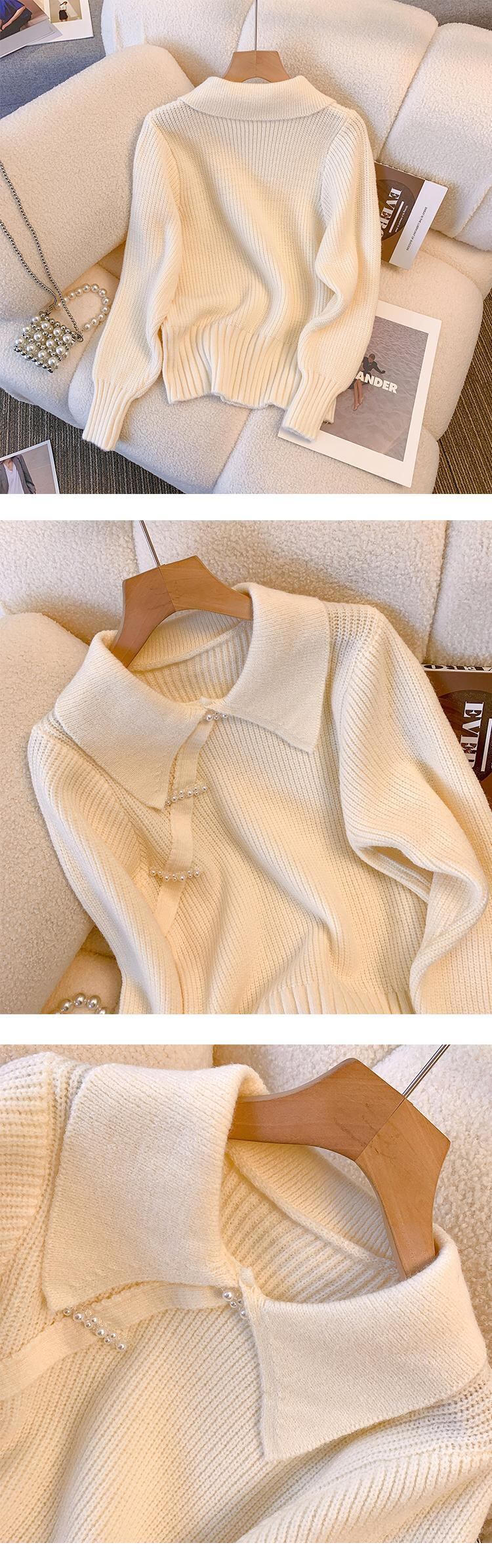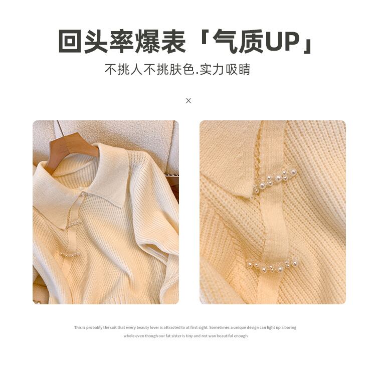プラスサイズの婦人服 2023 春の新しいファットシスターレトロオールマッチポロ襟デザインセンスニッチニットセーター女性 大きめサイズ スプリング 春物 8884186225682289
