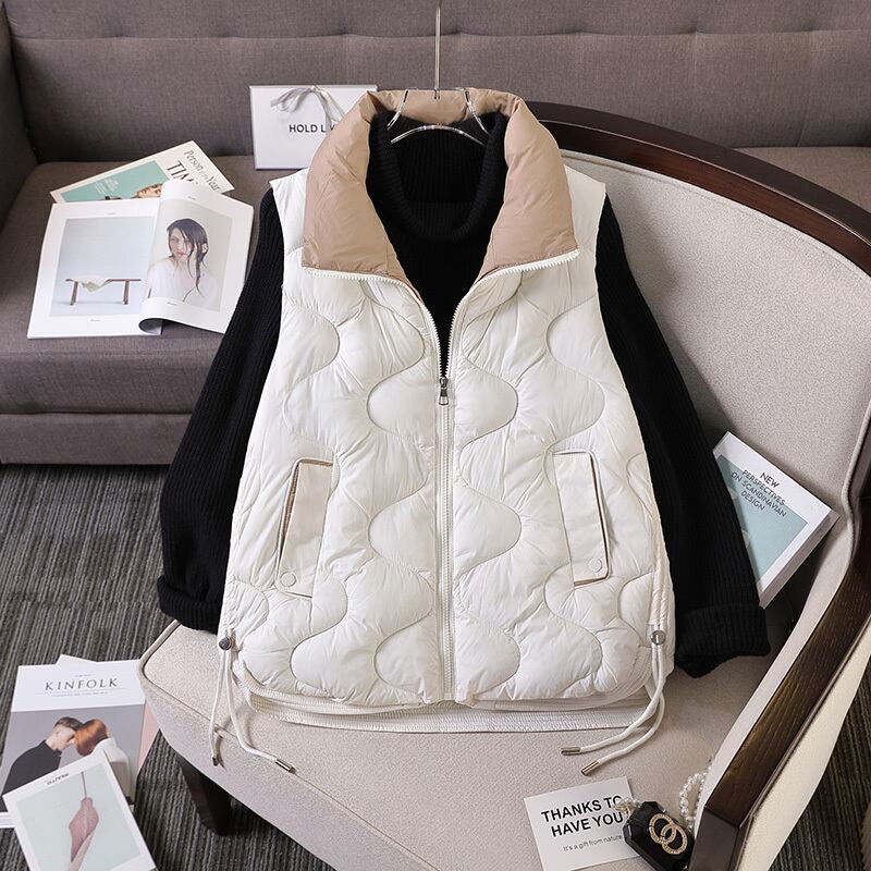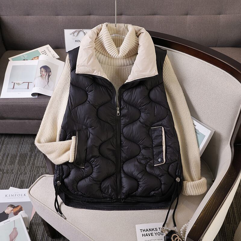 プラスサイズの婦人服 2022 ファットシスター冬の新ファッション気質薄いスタンドカラーの綿のベストのベストのジャケットの女性 コットン 大きめサイズ ウィンター 冬物 8884140734082660