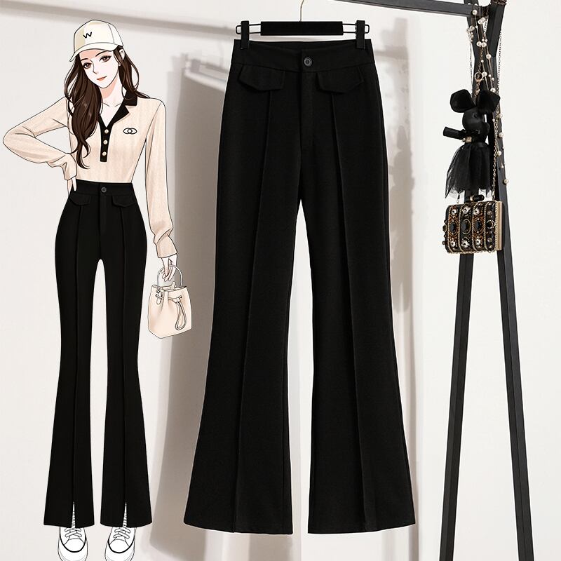 プラスサイズの婦人服 2023 脂肪姉妹春の新ハイウエストのズボンスリムスリム背弾性スーツパンツフレアパンツ女性 ハイウェスト レッド エラスティック 伸縮 大きめサイズ スプリング 春物 8884131828225836