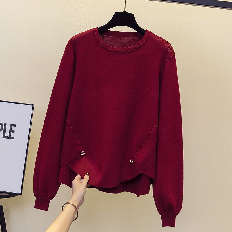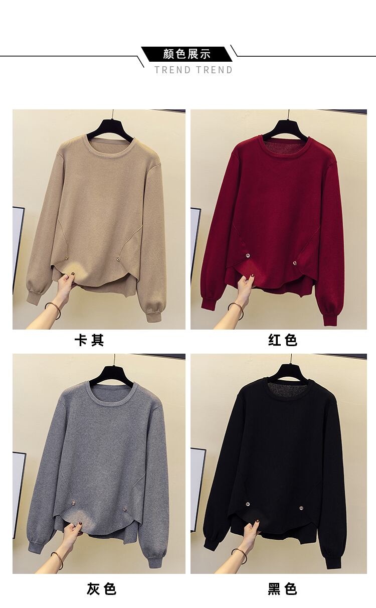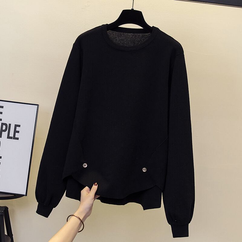 大きいサイズの婦人服 2023 春の新しい太った姉妹 eign スタイルのデザイン感覚不規則なボディカバー無地ニット底入れシャツ 大きめサイズ スプリング 春物 ソリッドカラー 8884178833346726