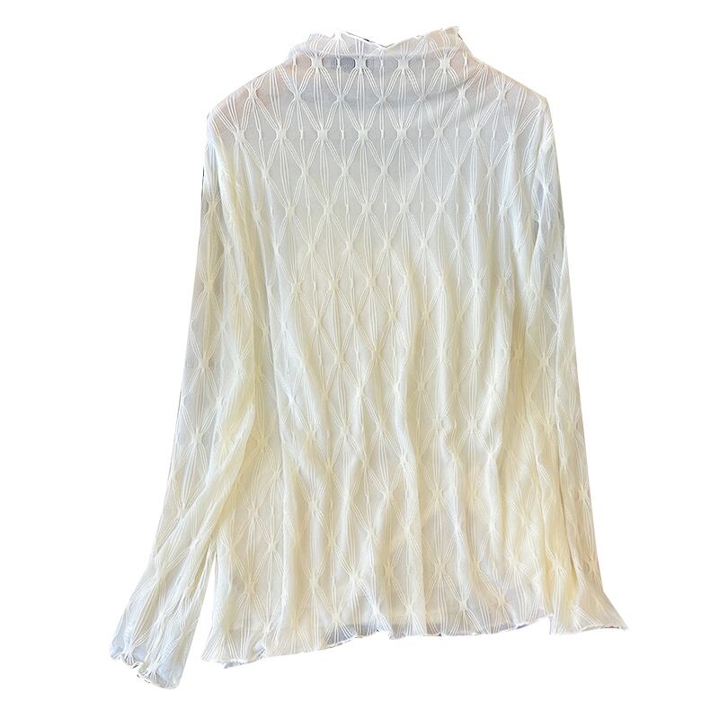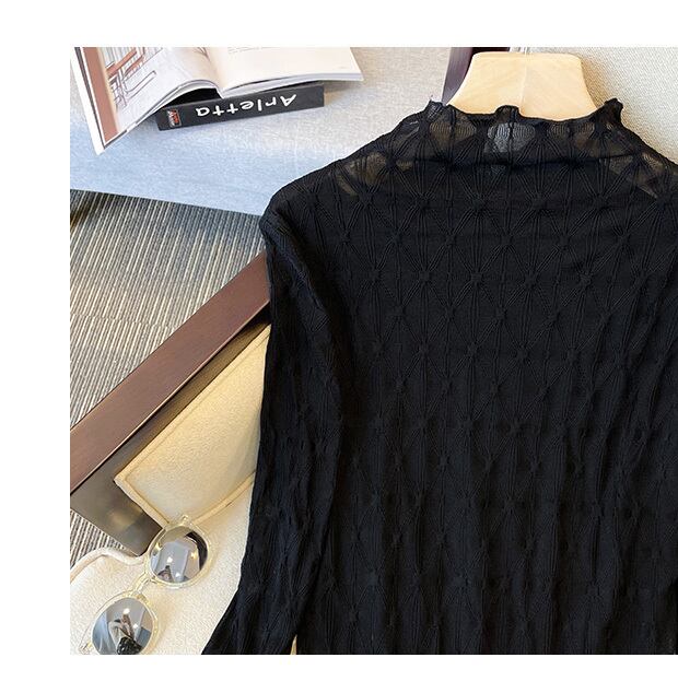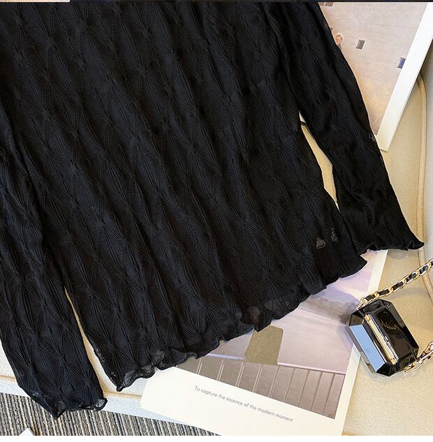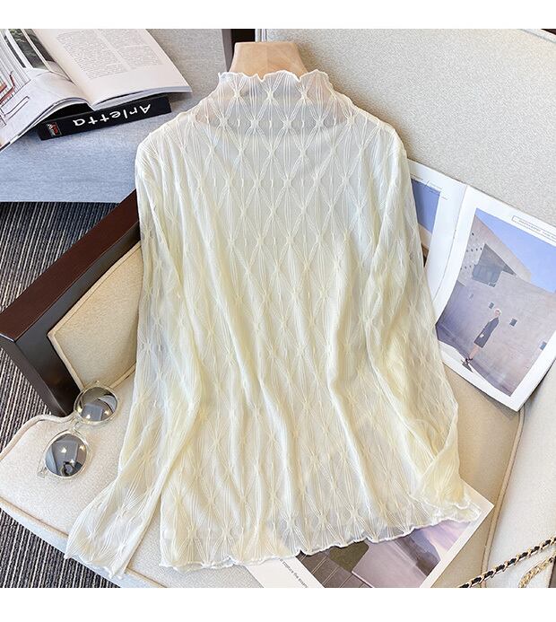 プラスサイズの婦人服 2023 春の新ファットシスターカジュアルハーフハイカラーオールマッチスプライシングレースメッシュ底入れシャツ女性 大きめサイズ スプリング 春物 8884125230897885