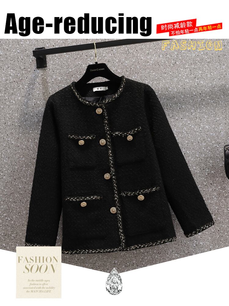 プラスサイズの婦人服 2023 トレンディな女性の春の新しいファットシスタースタイルのファッショナブルなツイードカジュアルスリムウールコート潮 大きめサイズ スプリング 春物 8884187031288822