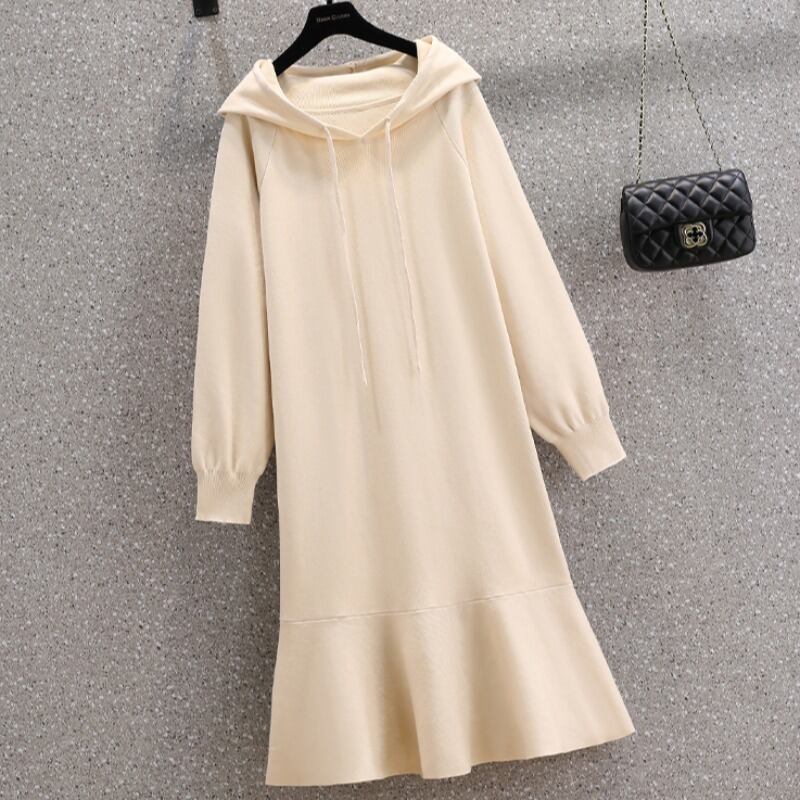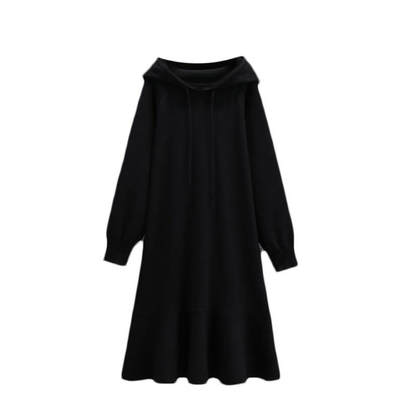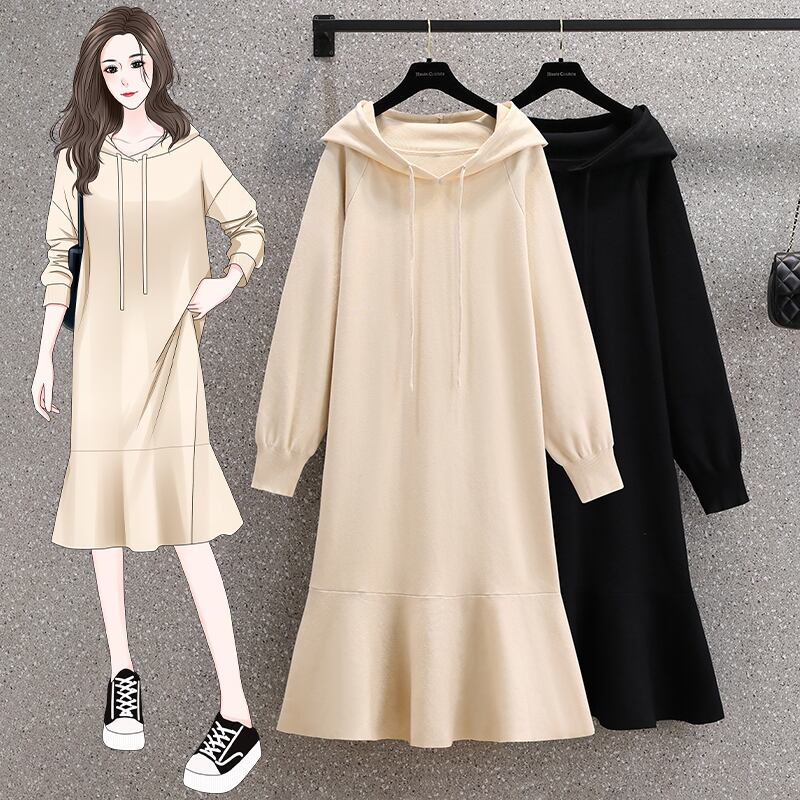 大きいサイズの婦人服 2023 春の新しいスタイルの太った姉妹の腰の痩身と肉をカバーする無地のフード付きミッドレングスのドレス 大きめサイズ スプリング 春物 ソリッドカラー 8884173260171858