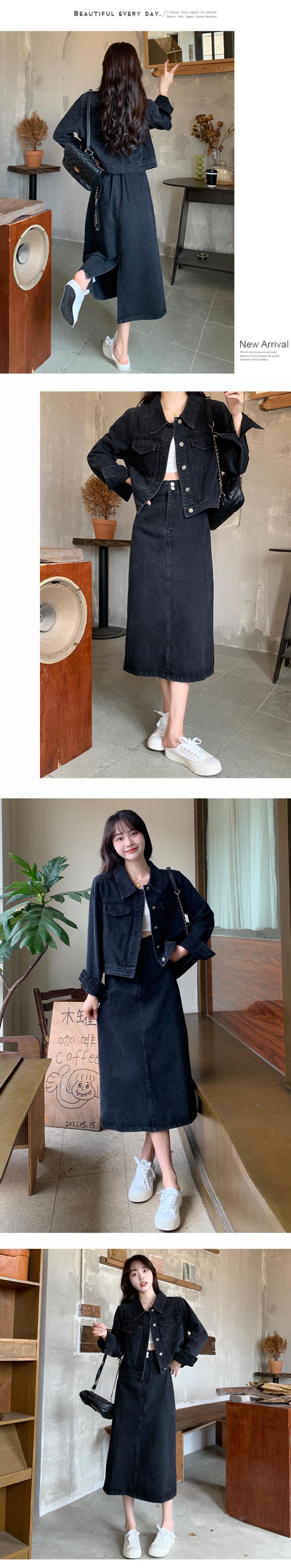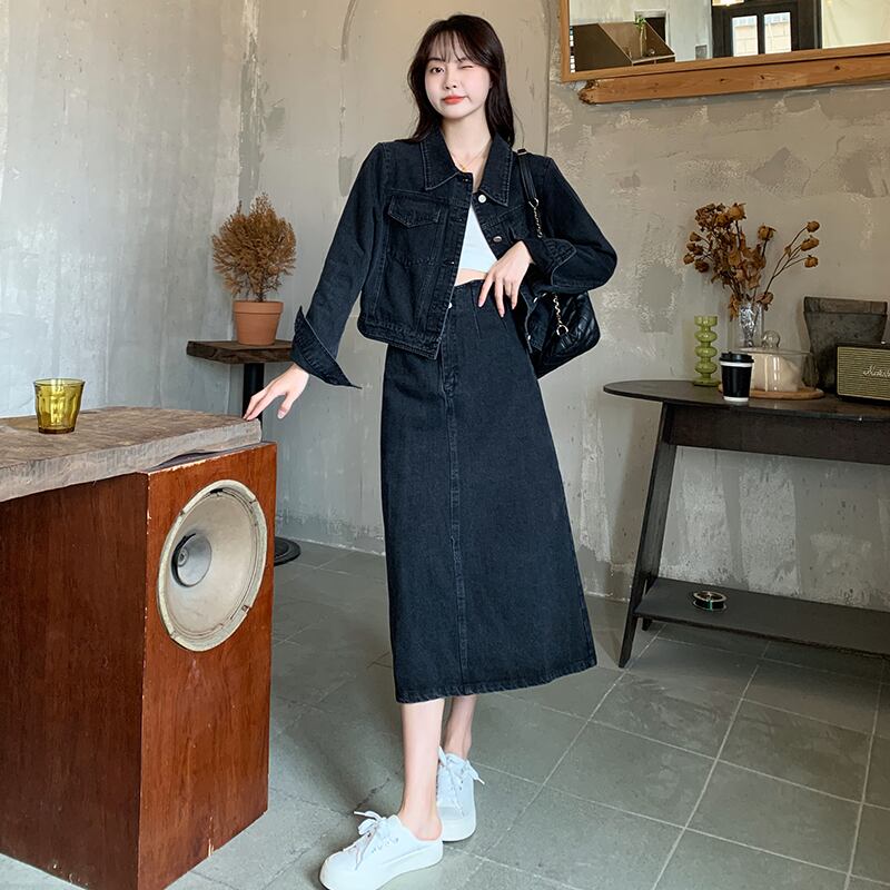 大きいサイズの婦人服 2023 春服ファットシスターズショートセクション肉付きデニムスーツジャケットスカート痩身ツーピーススーツ 大きめサイズ スプリング 春物 8884132125005288