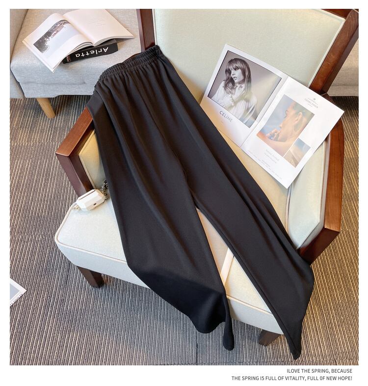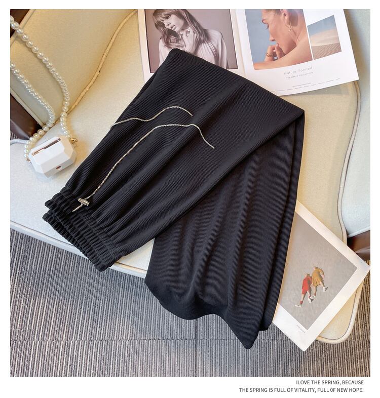 大きいサイズの婦人服 2023 春の新しい太った姉妹の年齢を減らすハイウエストの薄い弾性ウエスト ドレープ ピュア カラー カジュアル パンツ エラスティック 伸縮 大きめサイズ スプリング 春物 8884154819164814