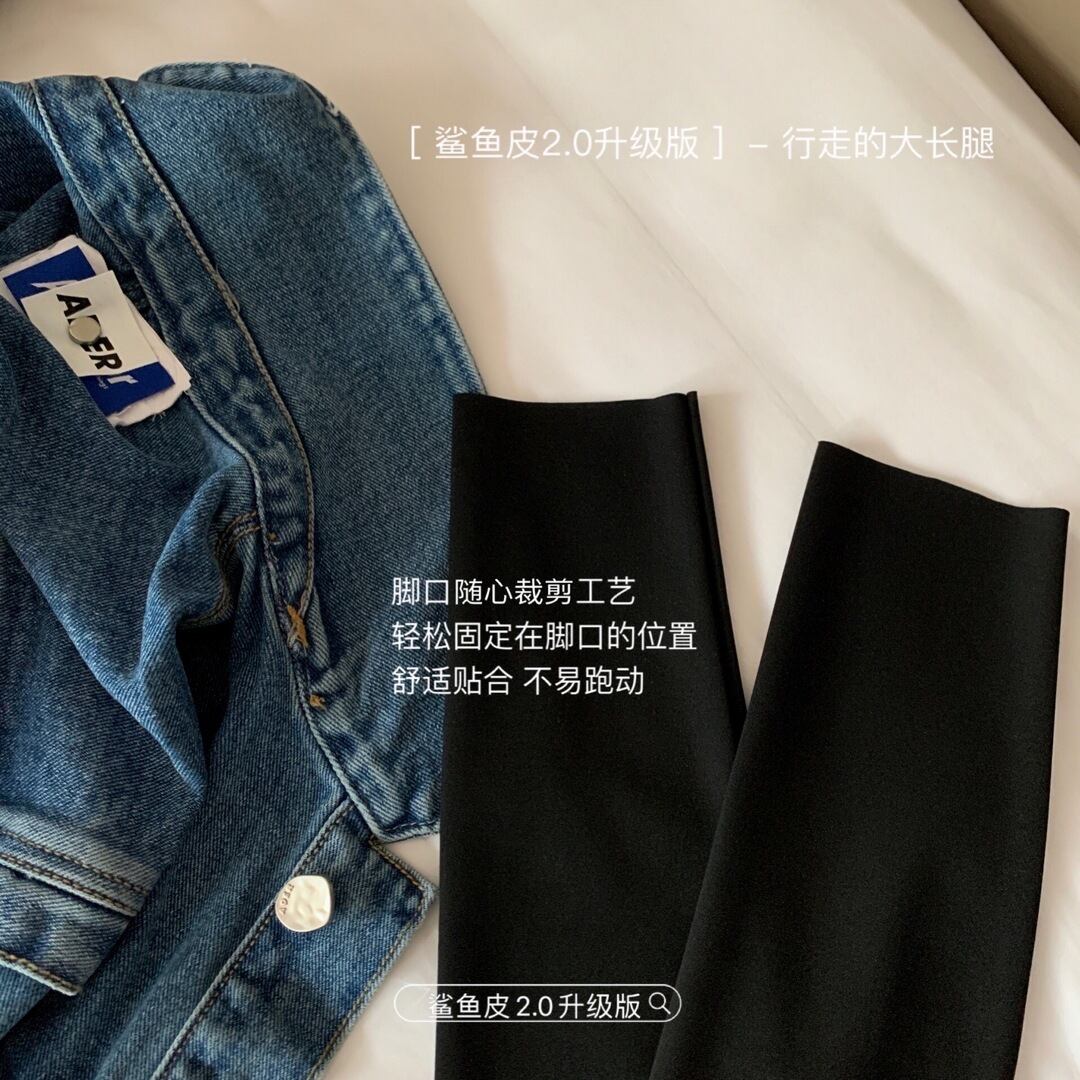 プラスサイズの婦人服 2023 ファットシスター春の新オールマッチ痩身サメ皮レギンス高弾性ヨガパンツ エラスティック 伸縮 大きめサイズ スプリング 春物 8884193761207924