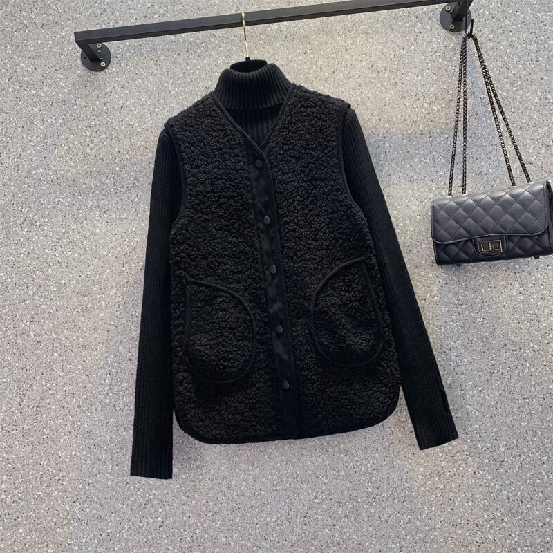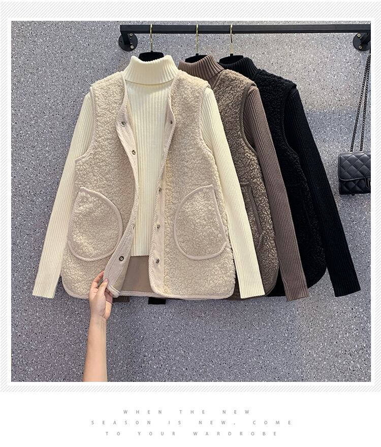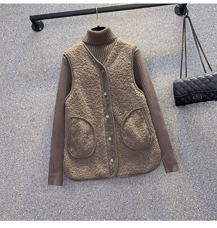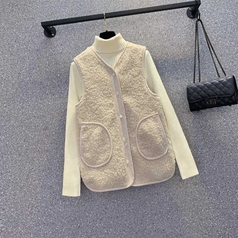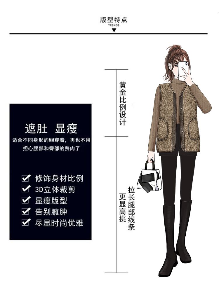 大きいサイズの婦人服 2023 トレンディな女性の春の新しい太った姉妹は厚く、ベルベットのスタイルのファッショナブルなオールマッチの模造子羊のベルベットのベスト 大きめサイズ スプリング 春物 8884160195172898