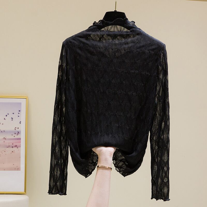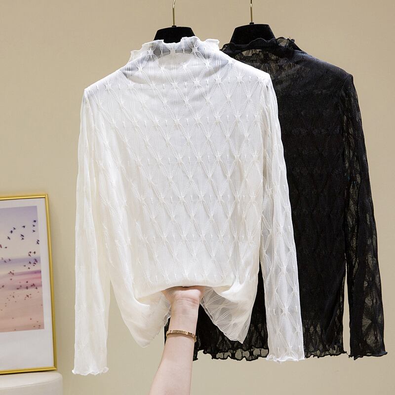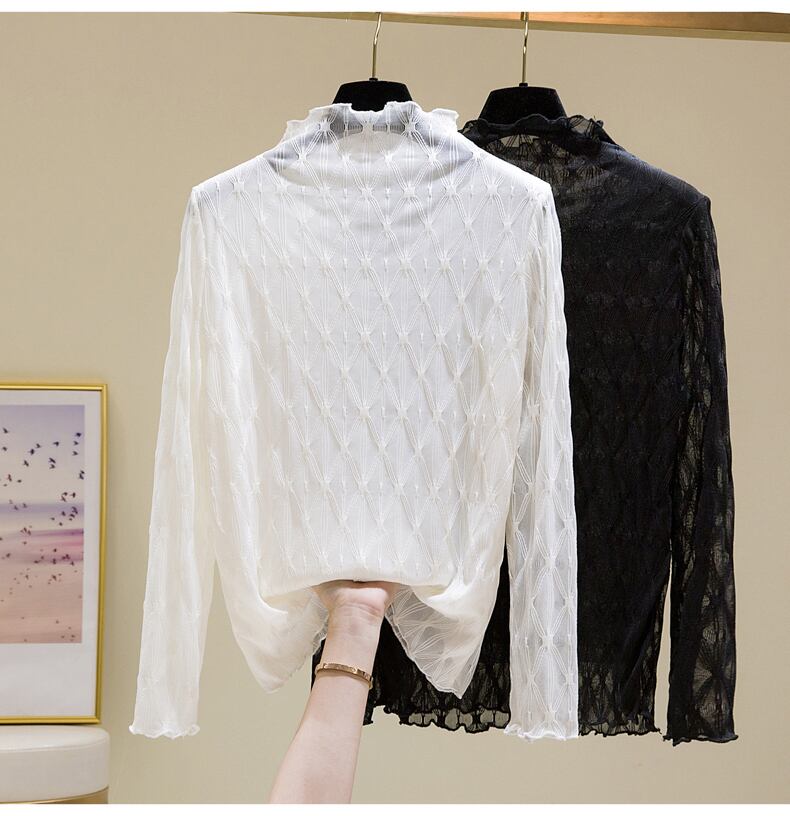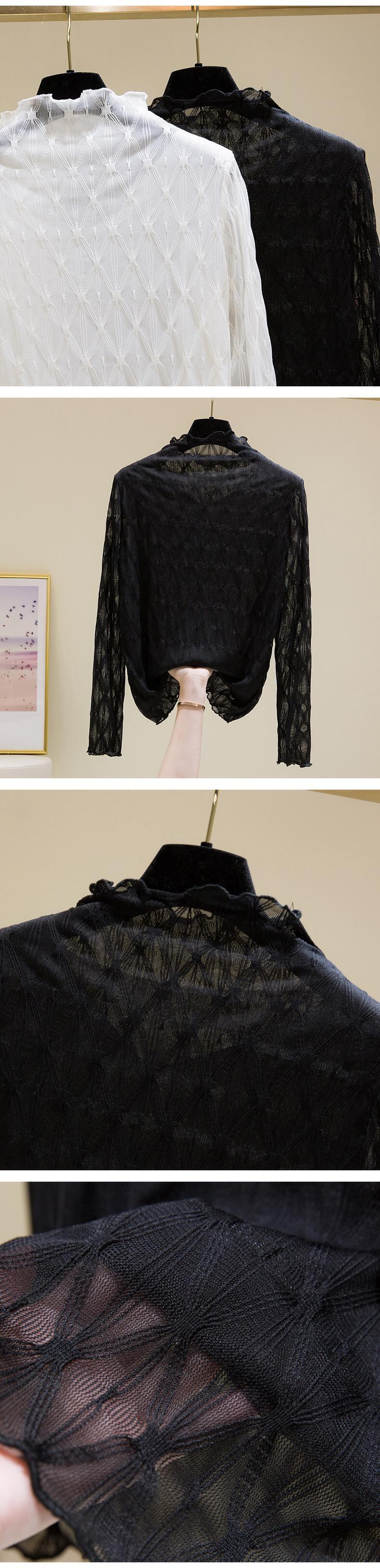 プラスサイズの婦人服 2023 ファットシスター春の新ジャケットハーフハイ襟付きレースメッシュ底入れシャツ Tシャツ女性 大きめサイズ スプリング 春物 8884137700332381