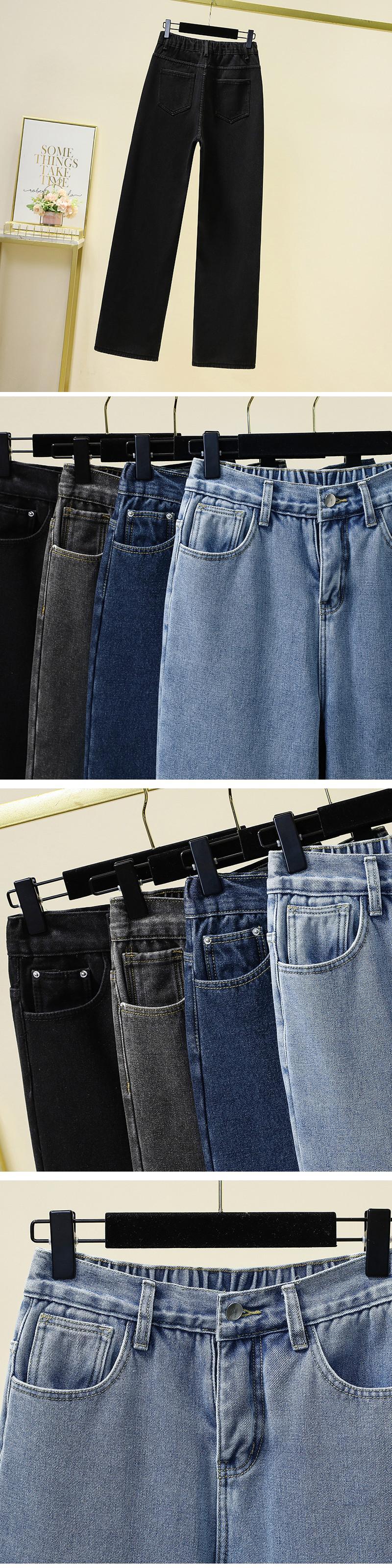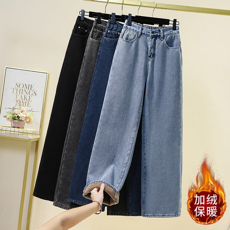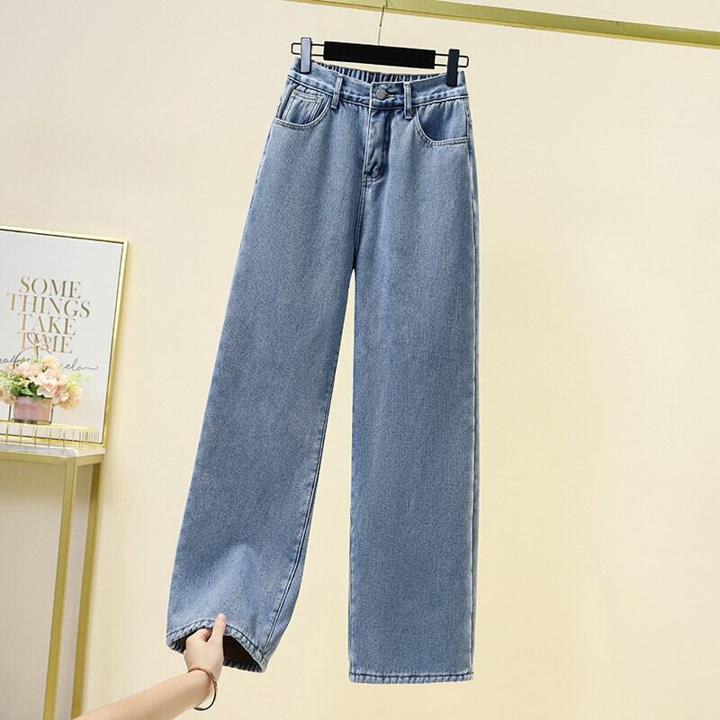 2023年春の新しいトレンディなファッションストレートプラスベルベットジーンズのプラスサイズの女性のゆったりとした薄いプラスベルベットワイドレッグパンツ 大きめサイズ スプリング 春物 8884120246431596