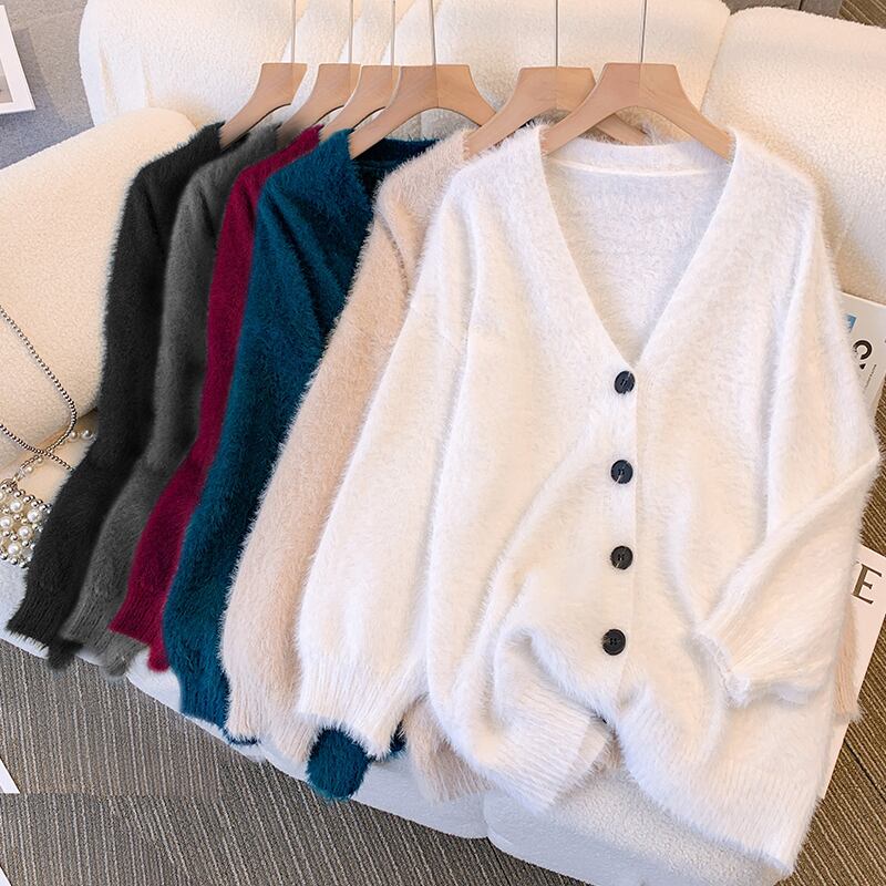 プラスサイズの婦人服 2023 ファットシスター春の新コート緩い怠惰な風 V ネックニットカーディガンのセーターの女性 大きめサイズ スプリング 春物 Vネック 8884128653121050