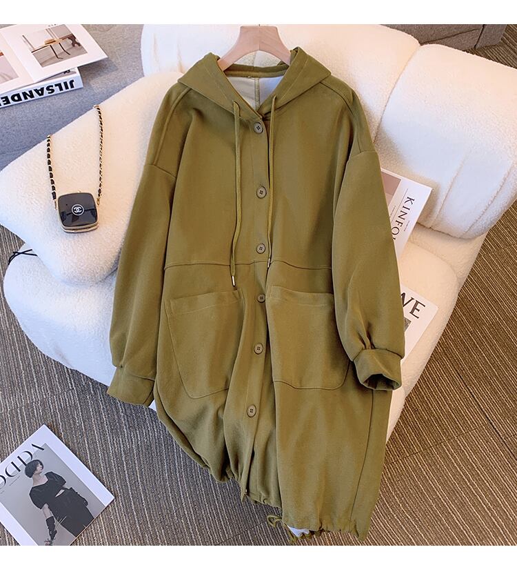 大きいサイズの婦人服 2023 トレンディな女性の春の新しいスタイルの太った姉妹ファッション緩いカバー肉ミッドレングスのフード付きウインドブレーカー ジャケット トレンディ 大きめサイズ スプリング 春物 8884183208487948