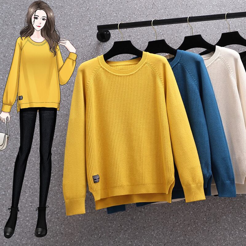 プラスサイズの婦人服 2023 ファットシスター春の新しい eign スタイルゆったりと薄いプルオーバー底入れシャツニットセータートップ 大きめサイズ スプリング 春物 8884193824294715