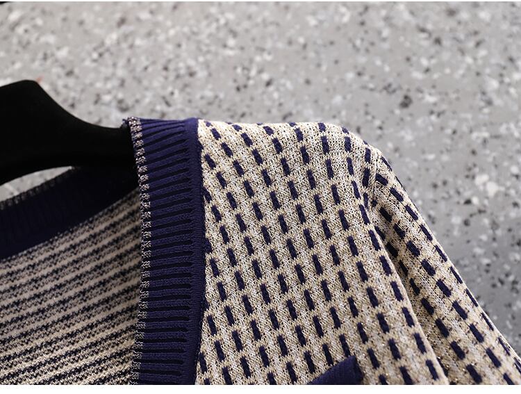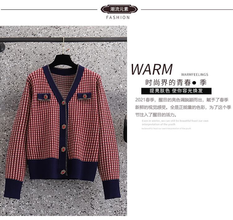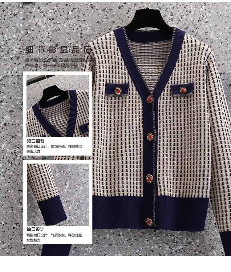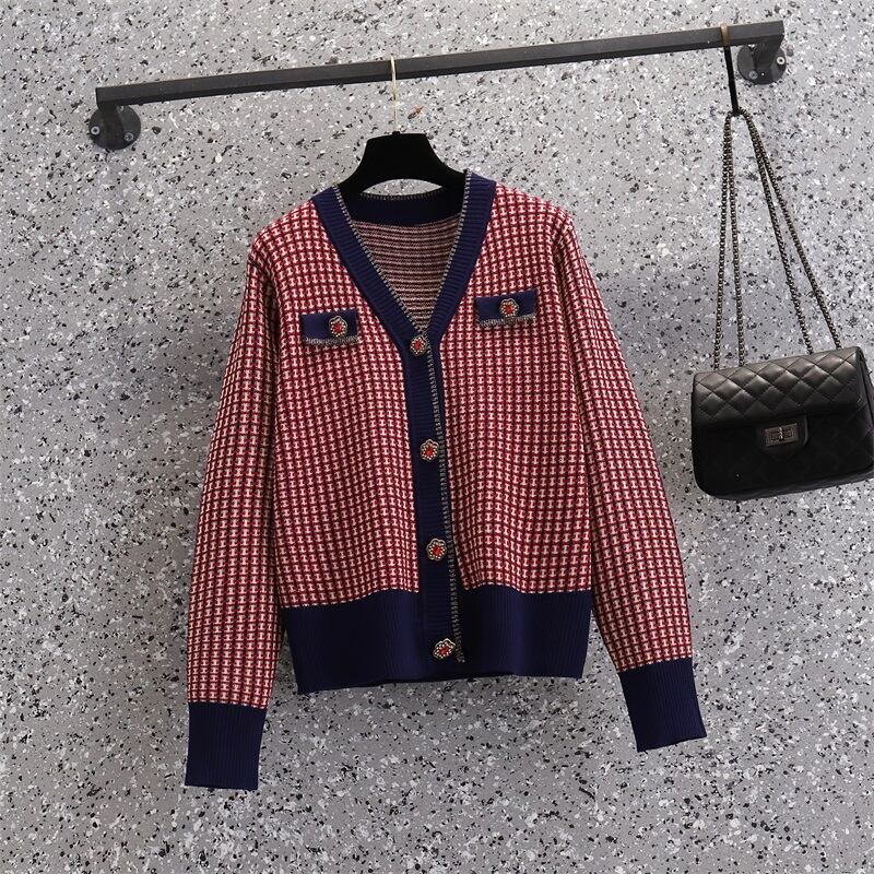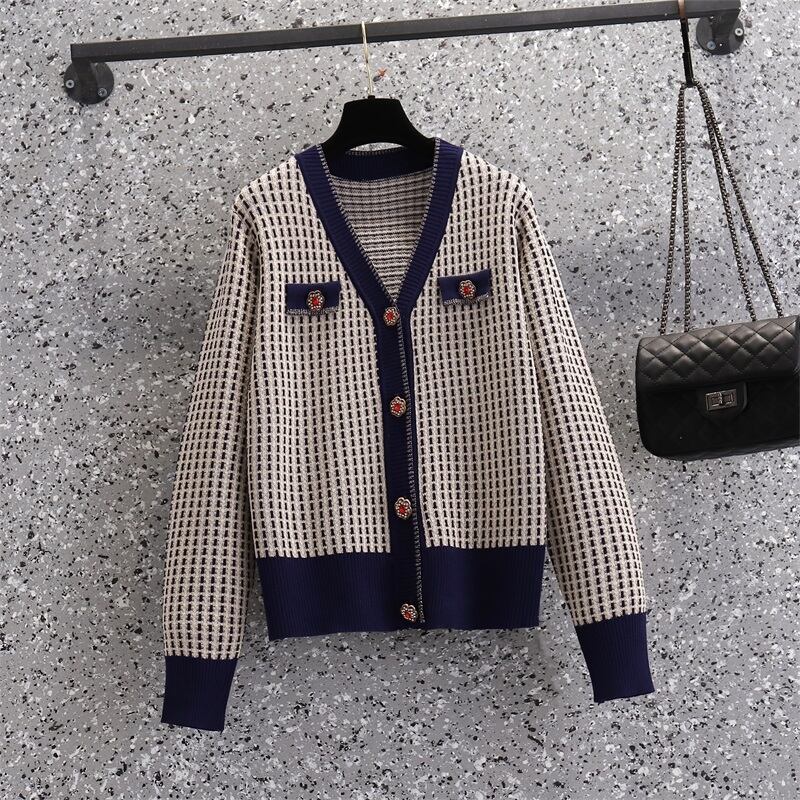 大きいサイズの婦人服 2023 春服脂肪姉妹新しいファッション怠惰なスタイル v ネックセーターカーディガン格子縞のジャケットの女性 大きめサイズ スプリング 春物 Vネック 8884137097147435
