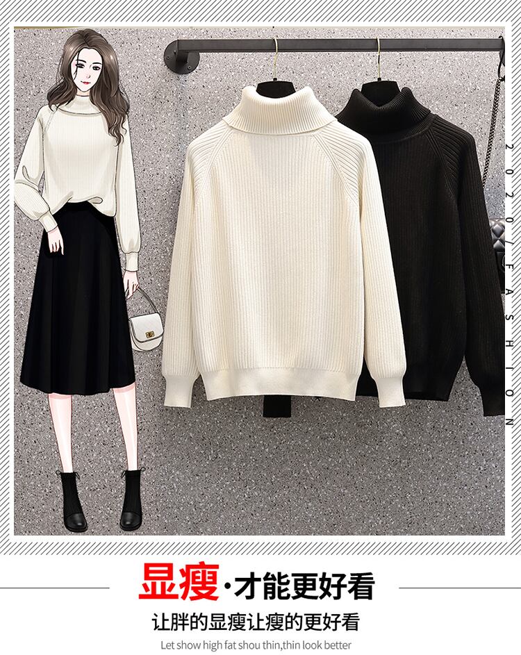 プラスサイズの婦人服 2023 ファットシスター春の新しい eign スタイル薄い緩いファッション肥厚ハイカラー底入れセーター 大きめサイズ スプリング 春物 8884195281968735