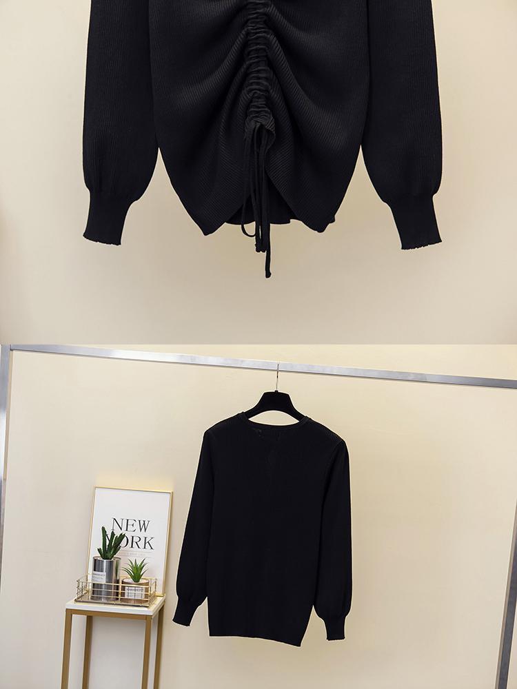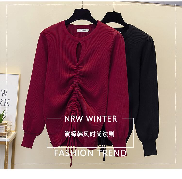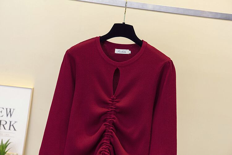 プラスサイズの婦人服 2023 春の新脂肪姉妹シックな中空巾着デザインニット底入れシャツトップ女性 大きめサイズ スプリング 春物 8884150327533018