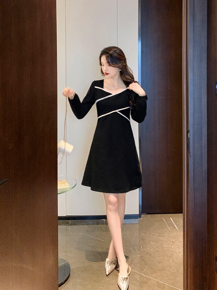 プラスサイズの婦人服 2023 ファットシスター春の新しいフレンチスタイルライトおなじみのスタイルニッチスリムブラックスクエアカラードレス女性 大きめサイズ スプリング 春物 スクウェア 8884166066424371