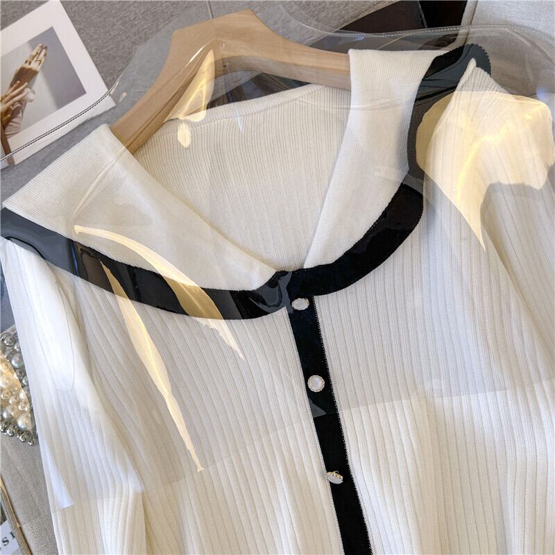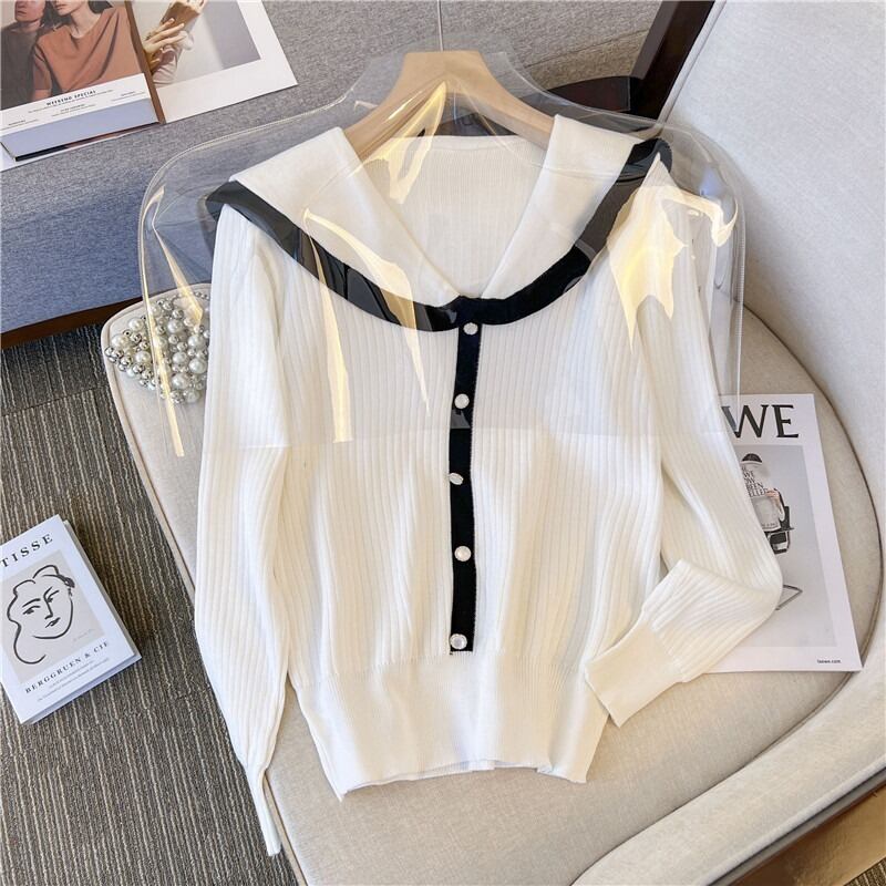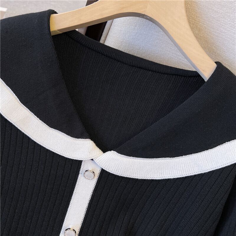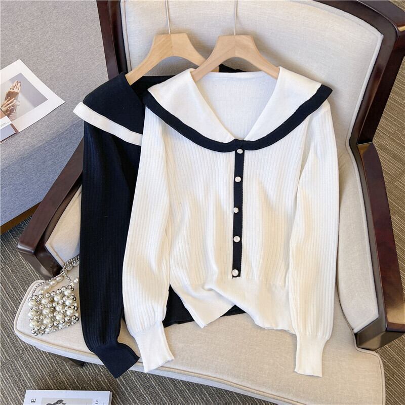 プラスサイズの婦人服 2023 トレンディな女性の春の新しいファットシスターオールマッチ人形の襟 eign スタイルニット長袖底入れシャツセーター ロング 大きめサイズ スプリング 春物 8884117305169579