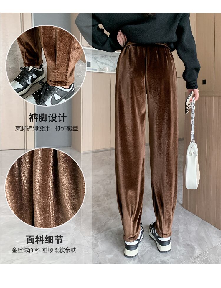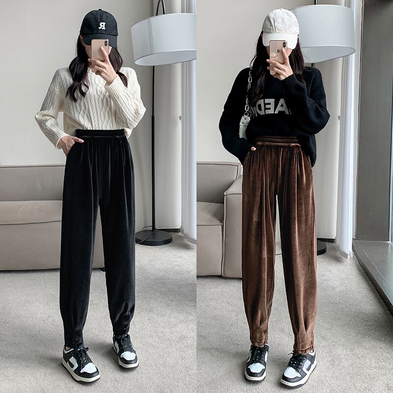 プラスサイズの婦人服 2023 脂肪姉妹春の新弾性ウエストゴールドベルベットハーレムパンツベルベット小さな足のズボンの女性 エラスティック 伸縮 大きめサイズ スプリング 春物 8884141438898043