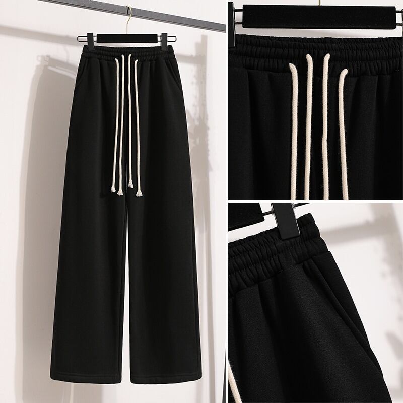 プラスサイズの婦人服 2023 春の新スタイルストレートワイドレッグダブルウエストロープモップ緩いカジュアルなズボンのズボンの女性 大きめサイズ スプリング 春物 ワイドパンツ 8884166797958612
