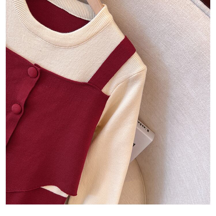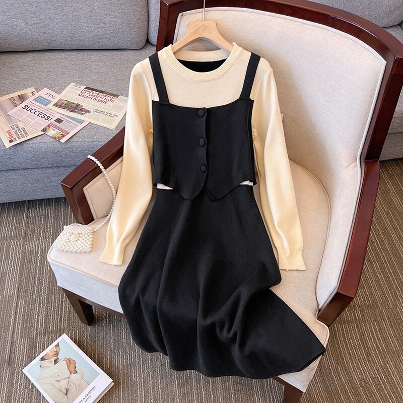 プラスサイズの婦人服 2023 春の新しいスタイルの太った姉妹ファッションオールマッチ薄いフェイクツーピース長袖ドレスと eign スタイル ロング 大きめサイズ スプリング 春物 8884169443593921