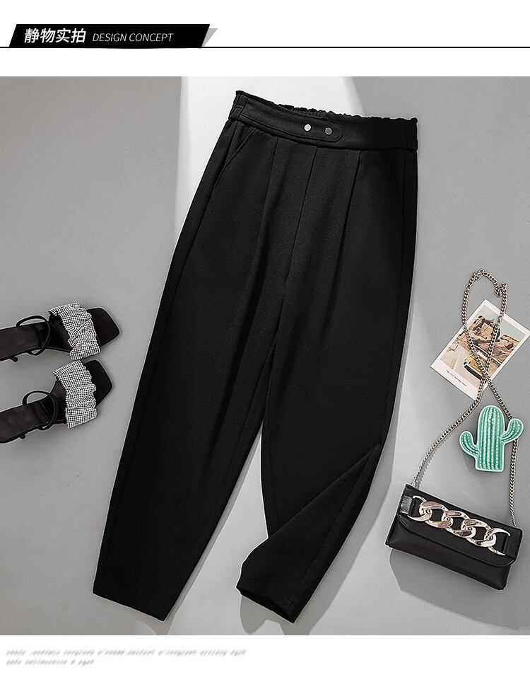 プラスサイズの婦人服 2023 トレンディな女性の春の新しいスタイルの太った姉妹は薄く見え、肉のハイウエストの無地の股間をカバーします気質の小さな足のズボンの女性 ハイウェスト 大きめサイズ スプリング 春物 ソリッドカラー 8884125873001342