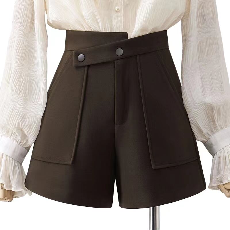 プラスサイズの婦人服 2022 冬の新しいファットシスター不規則なデザインセンスハイウエスト無地年齢を減らすカジュアルショーツ女性 ハイウェスト 大きめサイズ ウィンター 冬物 ブルマー ソリッドカラー 8884189905520320
