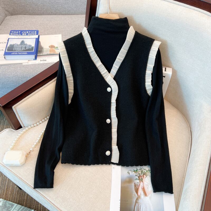 プラスサイズの婦人服 2023 ファットシスター春の新ファッションニットベストシニア Tシャツ底入れシャツ 2 点セット 大きめサイズ スプリング 春物 8884160354464694