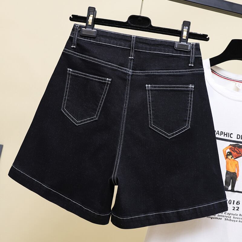 プラスサイズの婦人服 2023 夏の新しいファットシスターバージョン弾性ハイウエスト薄い気質カジュアルデニムショーツ ハイウェスト エラスティック 伸縮 大きめサイズ サマー 夏物 ブルマー 8884189382065253