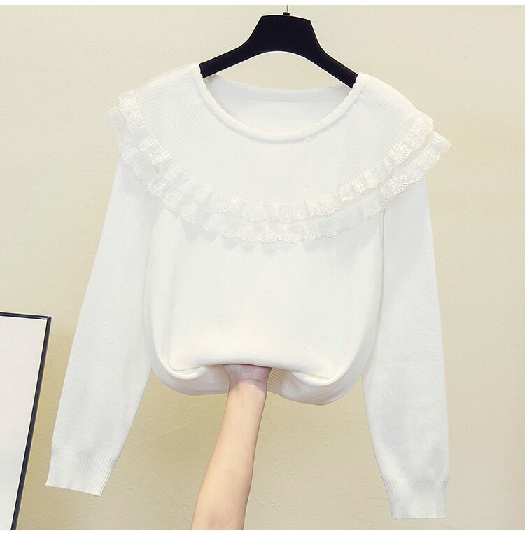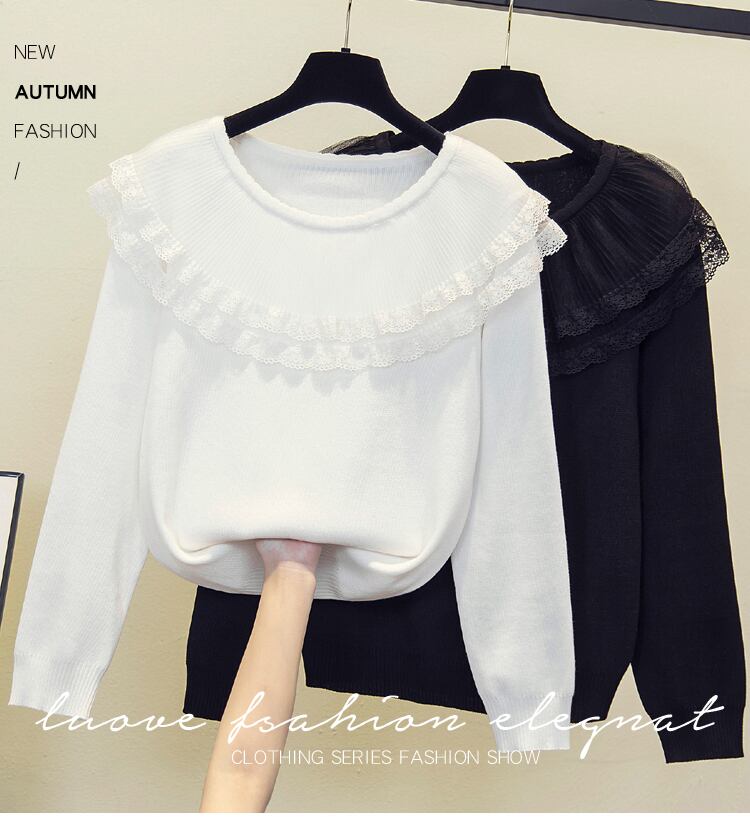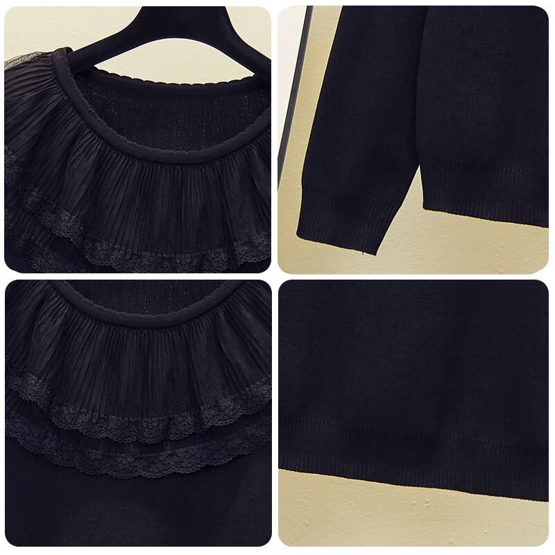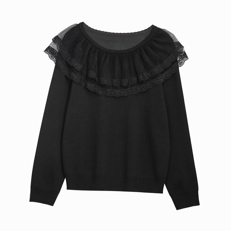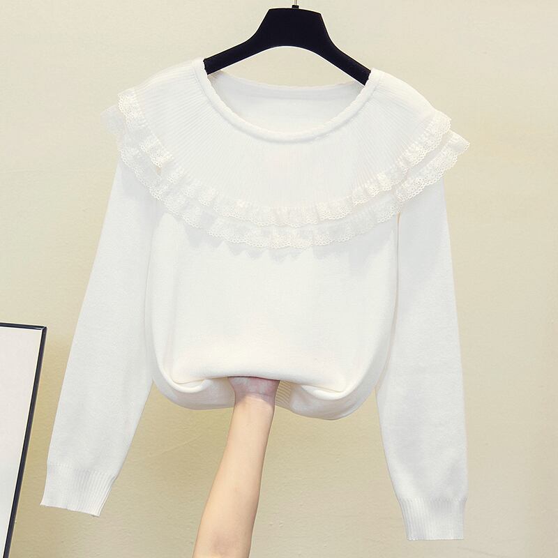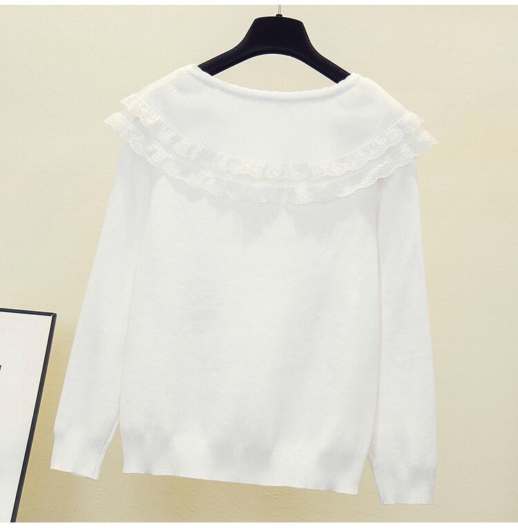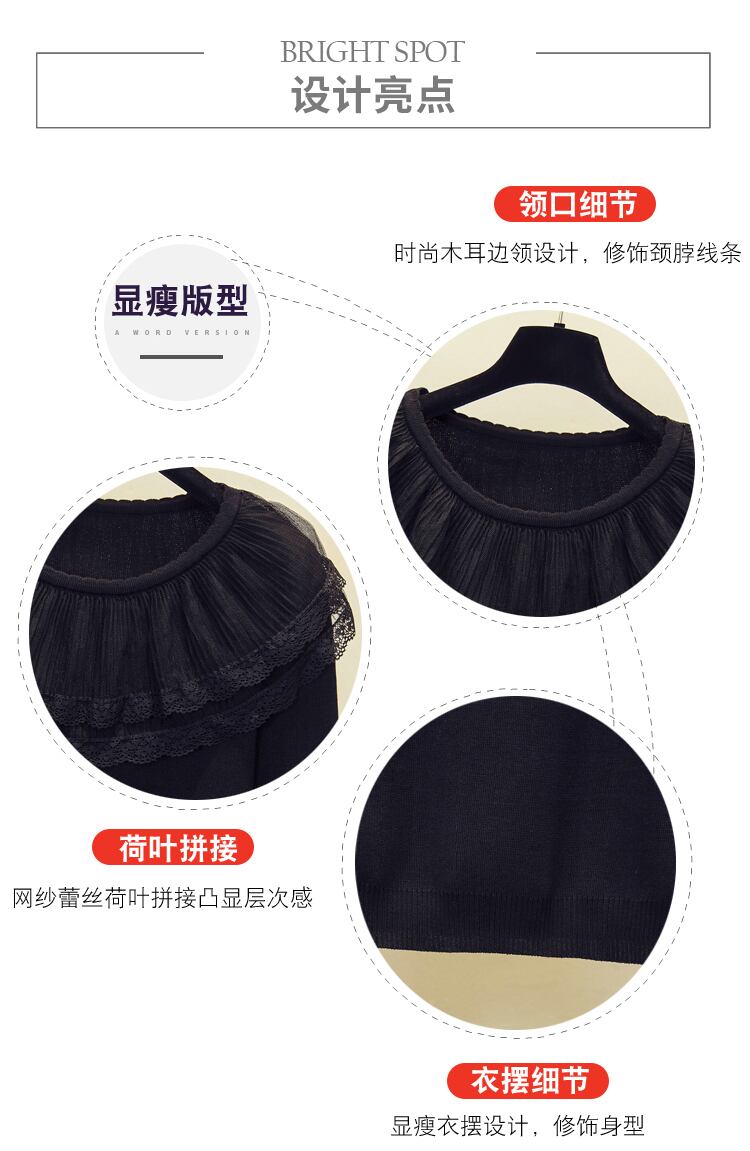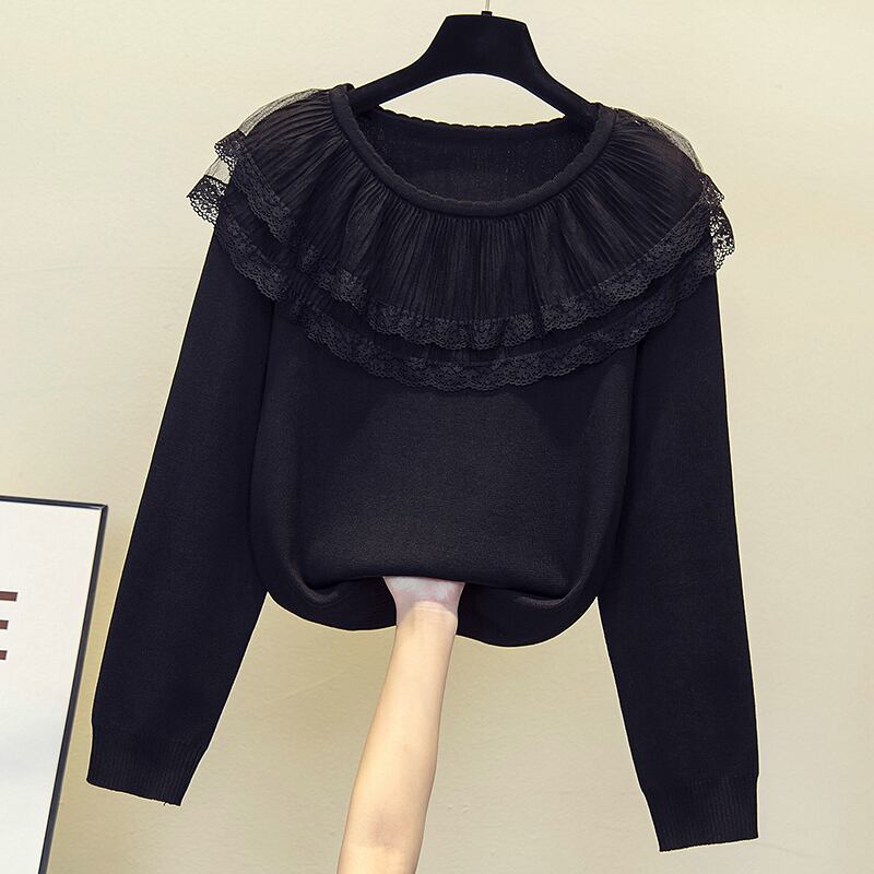 プラスサイズの婦人服 2023 脂肪姉妹春の新しいルーズメッシュレースフリル襟ニットセータートップ 大きめサイズ スプリング 春物 8884117007038177